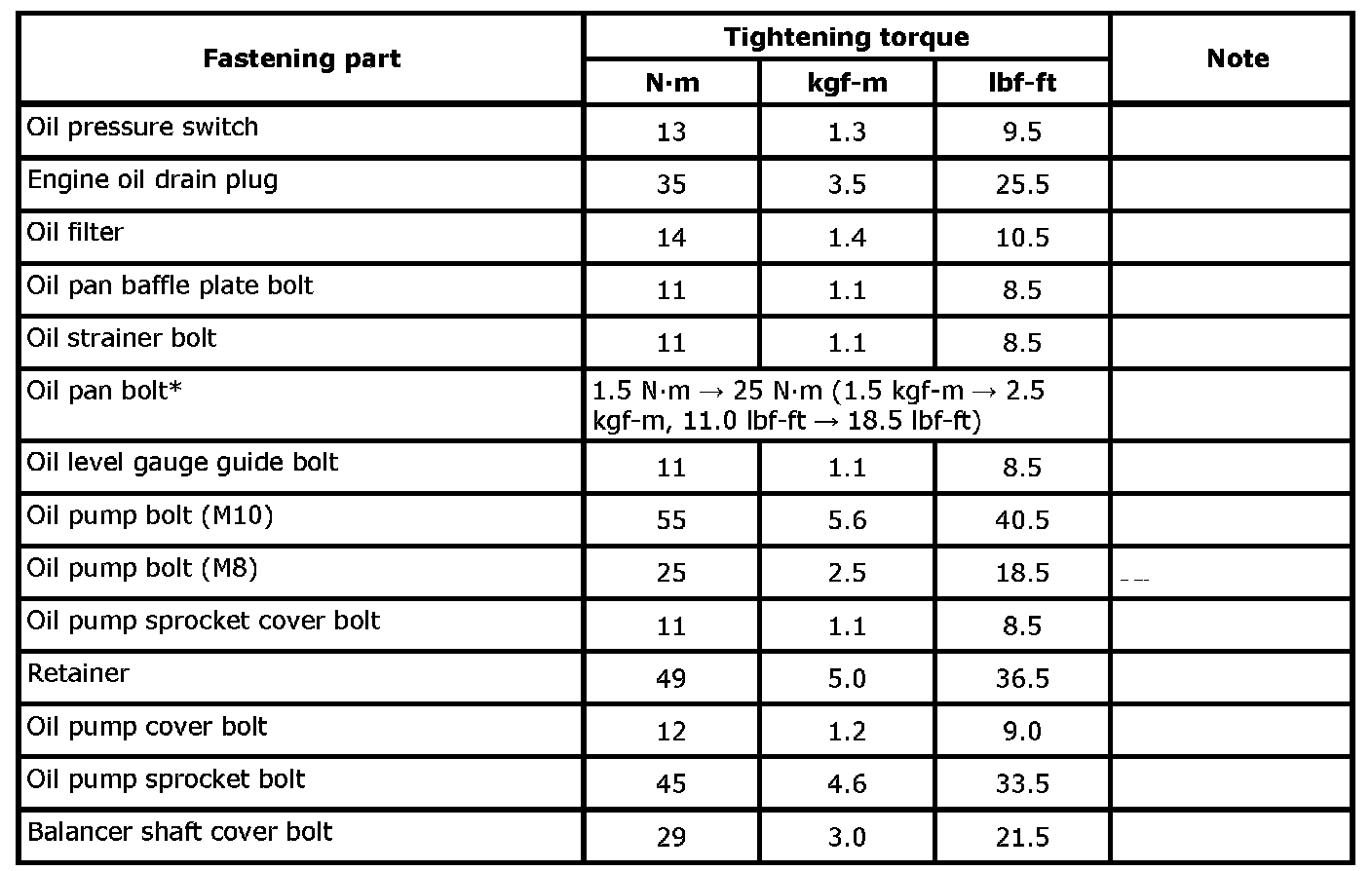 For fastener with * (asterisk) below, be sure to tighten it according to specified procedure in "Repair Instructions".