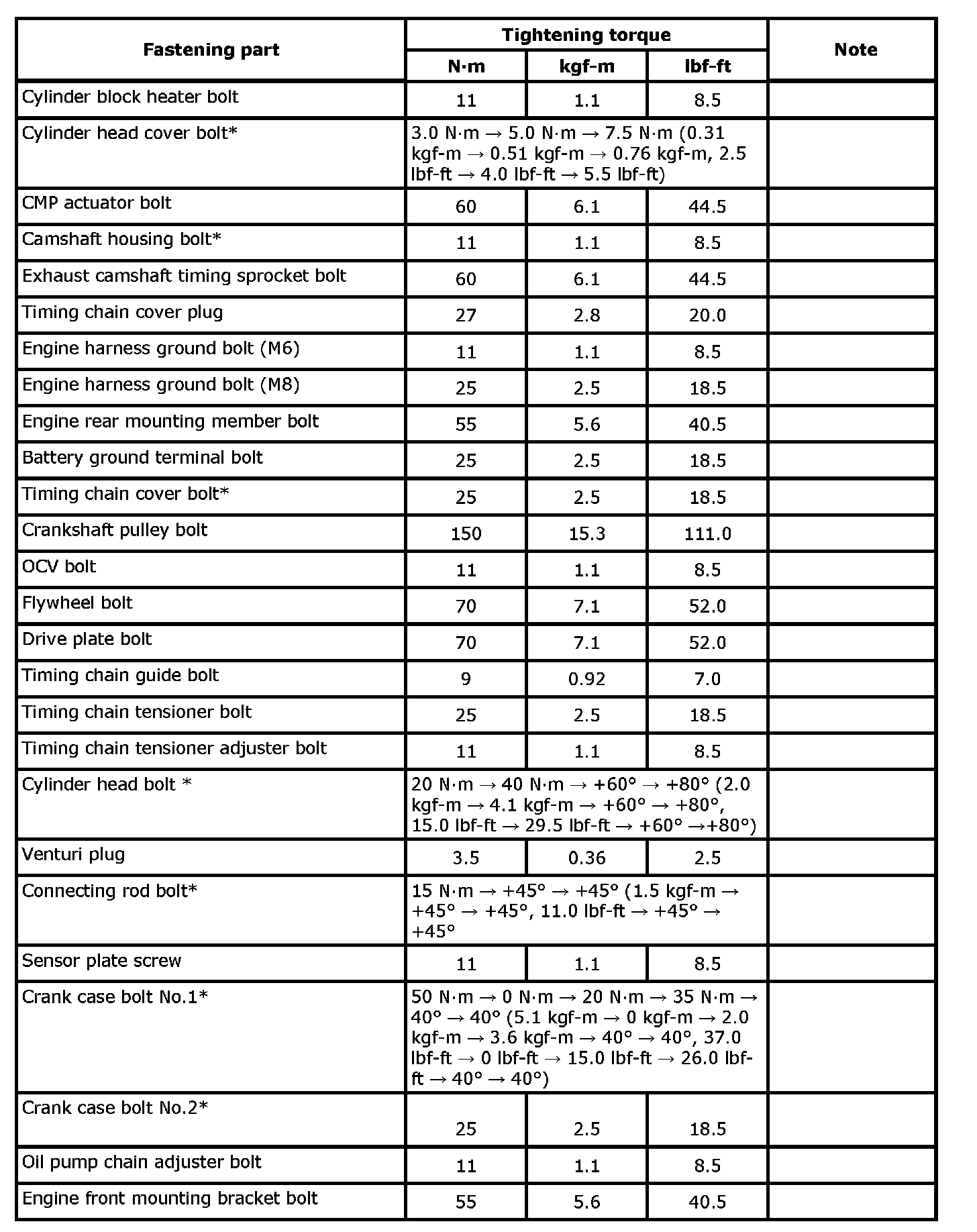 For fastener with * (asterisk) below, be sure to tighten it according to specified procedure in "Repair Instructions".
