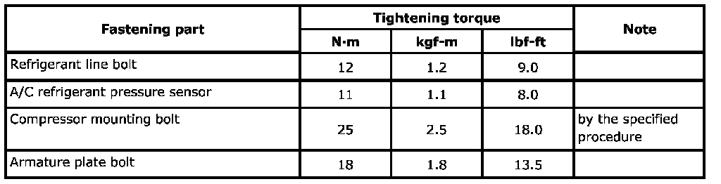 Tightening Torque Specifications: