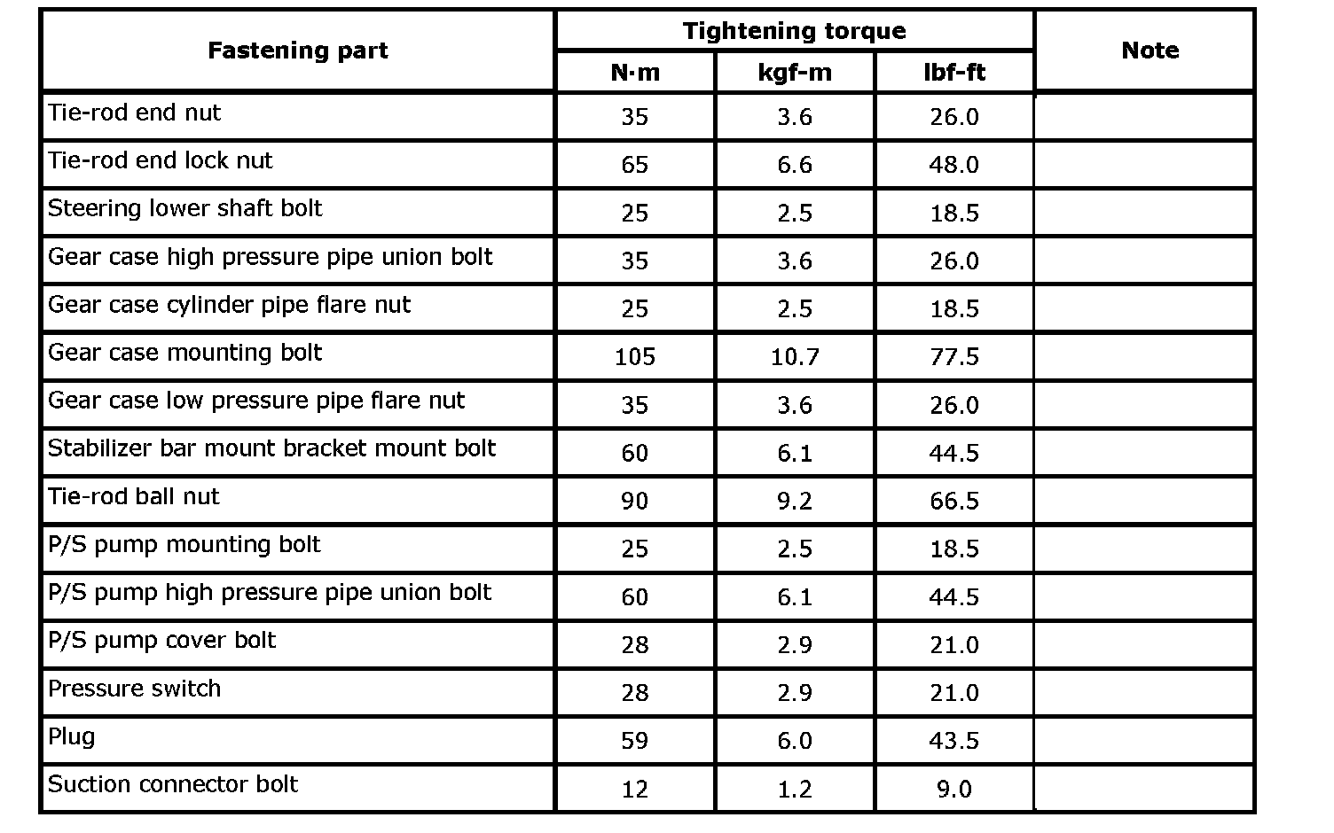 For the tightening torque of fastener not specified, refer to Fastener Information.