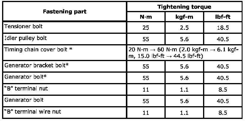 Tightening Torque SpecificationsCAUTION: For fastener with * (asterisk) below, be sure to tighten it according to specified procedure in "Repair Instructions".