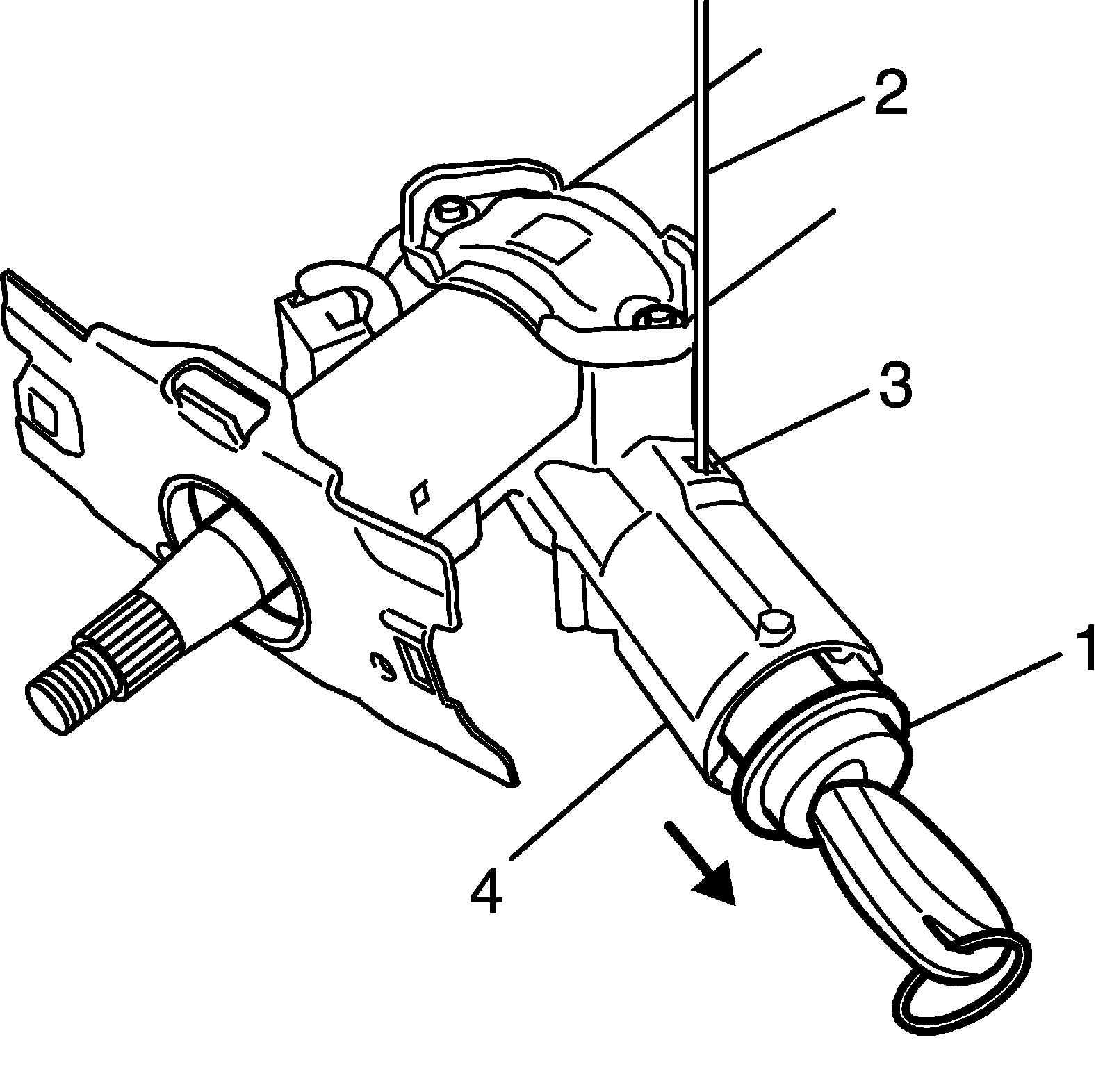 c) Detach ignition switch cylinder assembly (1) from steering lock assembly (4).