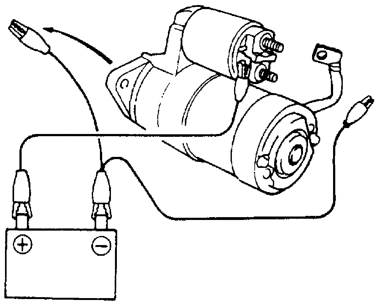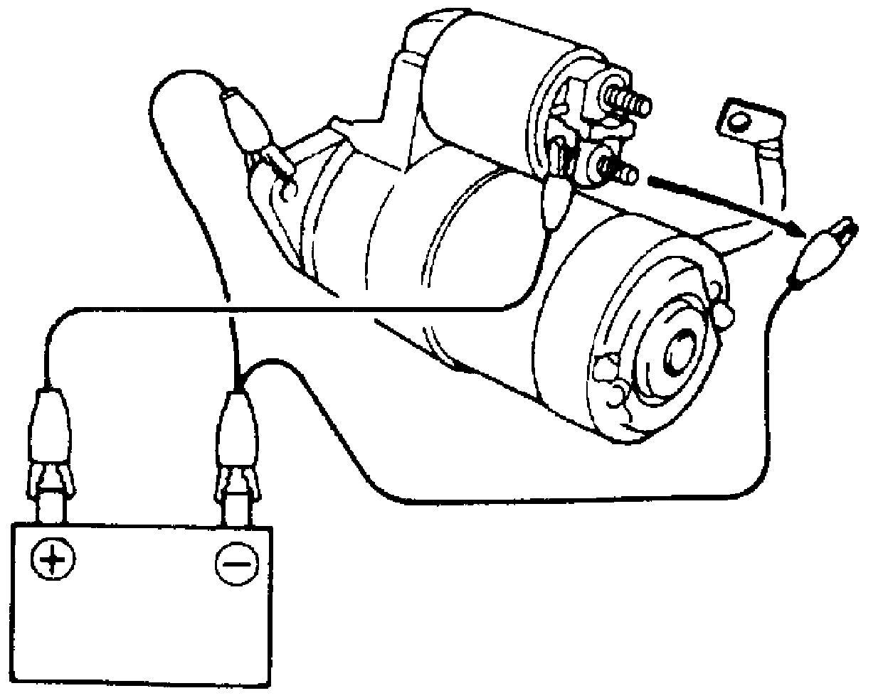 a. From the state of step 2) with plunger and pinion in "out" position, disconnect negative (-) lead from starting motor body.