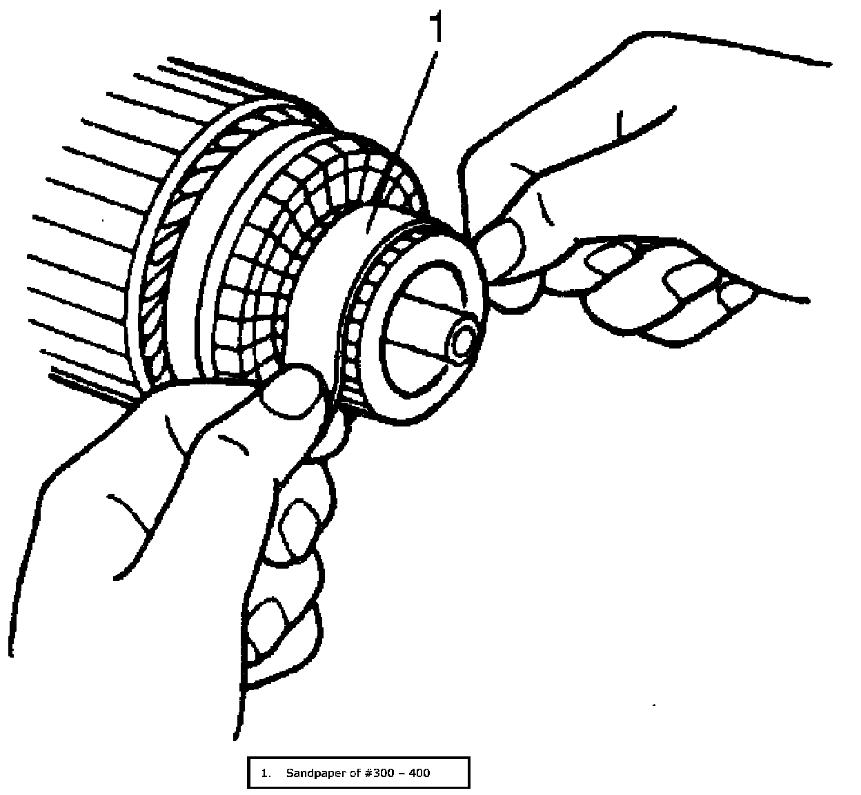 - Check commutator for dirt or burn. Correct commutator with sandpaper or lathe, if necessary.