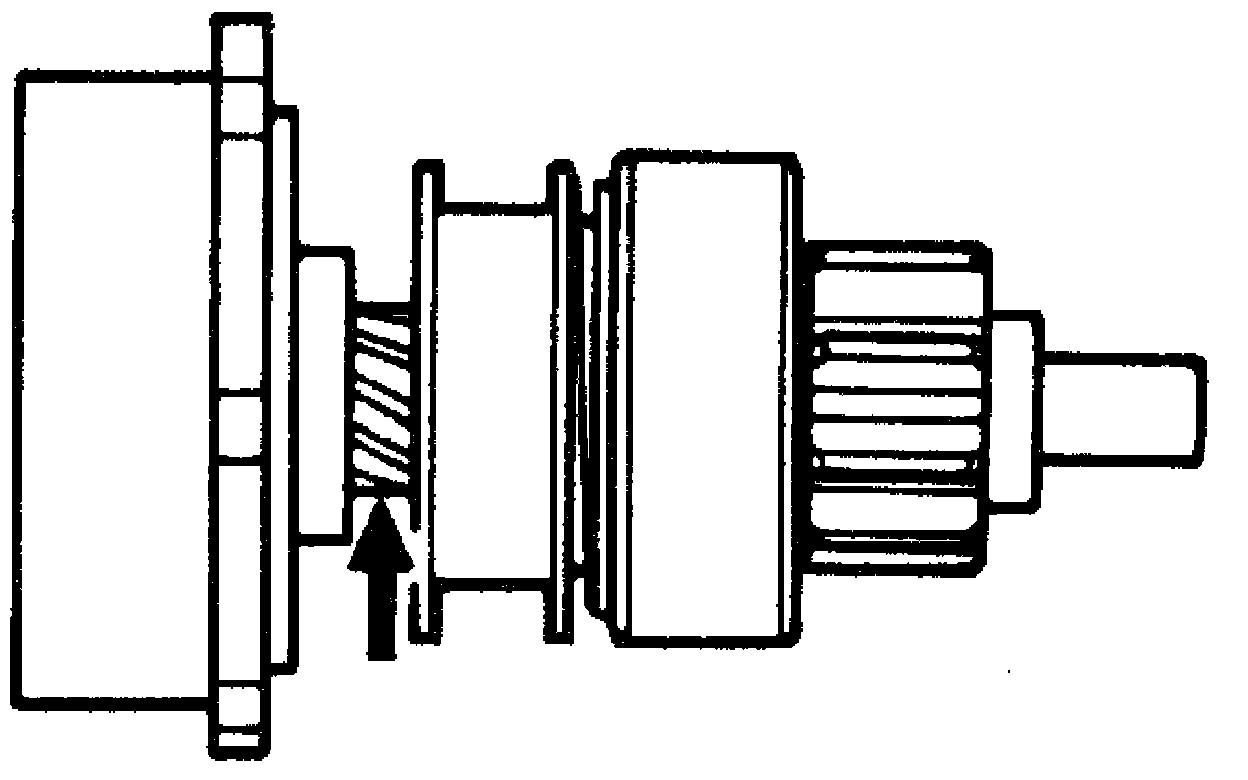 - Check that clutch locks up when turned in direction of drive and rotates smoothly in reverse direction. Replace pinion and overrunning clutch if necessary.