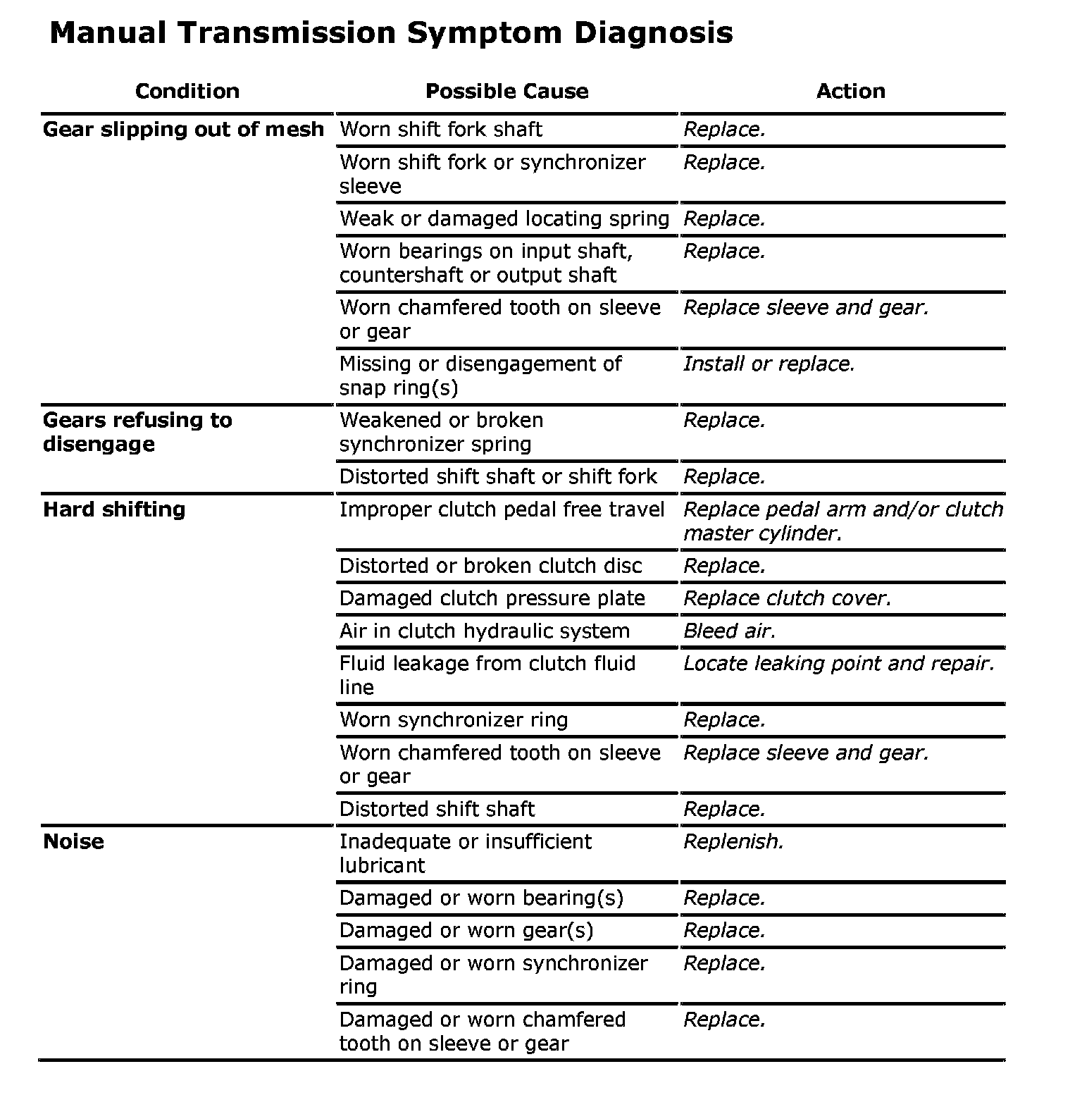 Manual Transmission Symptom Diagnosis