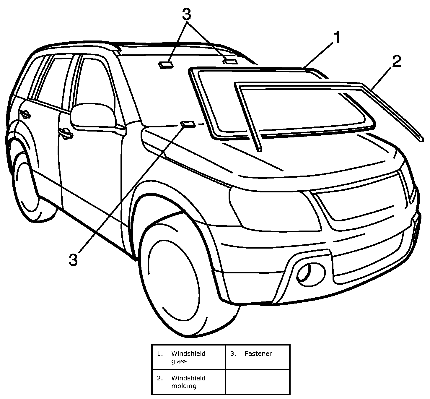 Windshield ConstructionThe windshield is installed by using a special type of adhesive (that is, one component urethane adhesive used with primer). For the windshield replacement, it is important to use an adhesive which provides sufficient adhesion strength and follow the proper procedure.