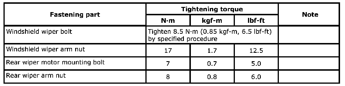 For the tightening torque of fastener not specified in this section, refer to Fastener Information.