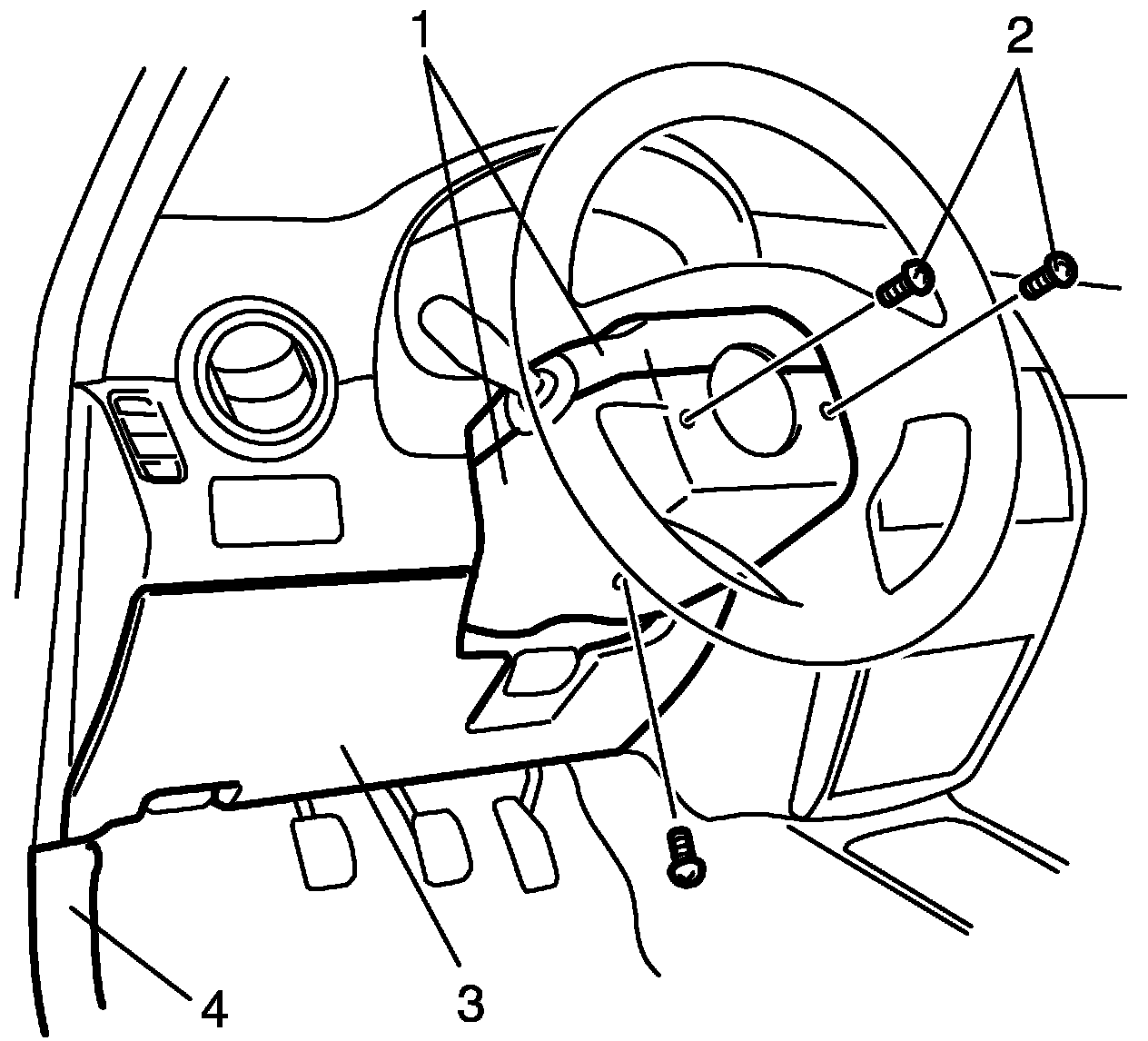 2. Remove dash side trim (4) and steering column hole cover (3).
