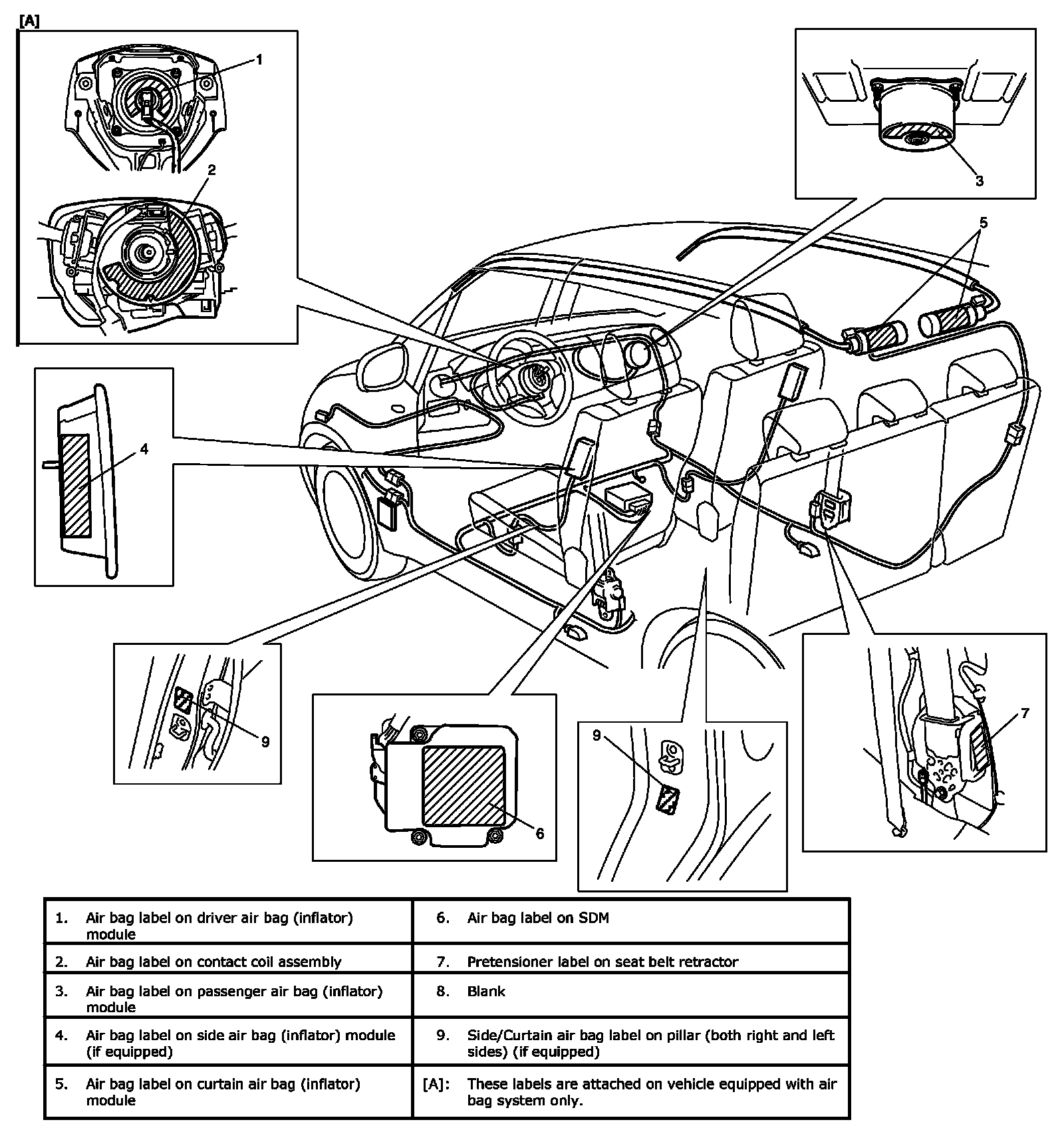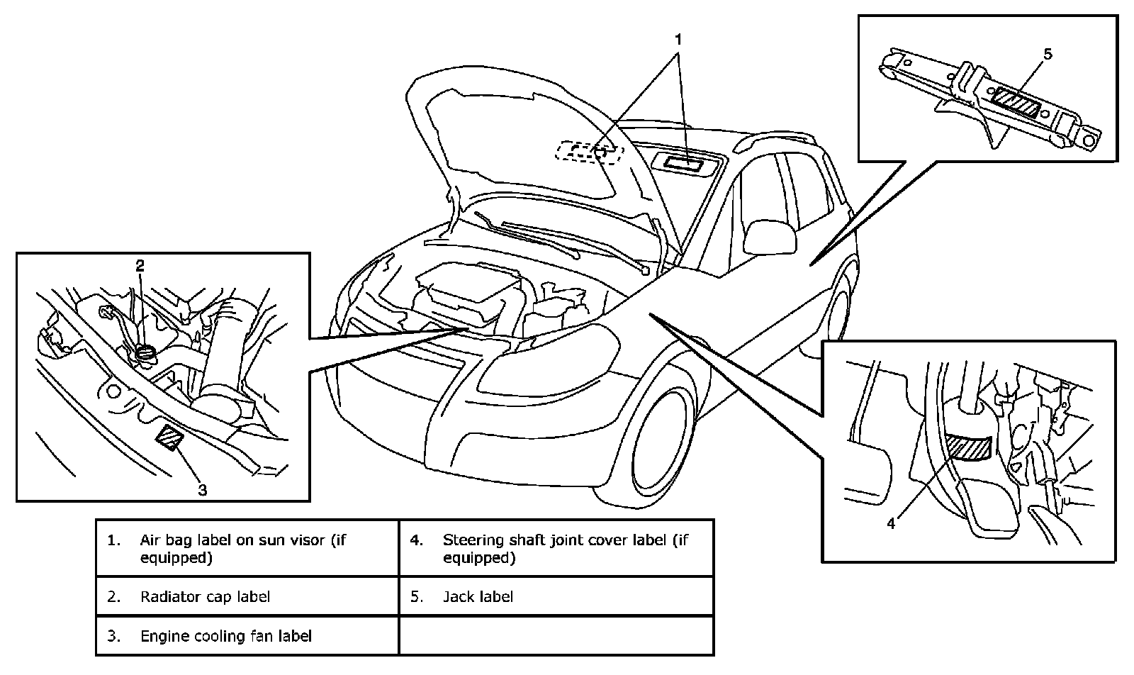 Warning, Caution And Information Labels Location The figure shows main labels among others that are attached to vehicle component parts. When servicing and handling parts, refer to WARNING / CAUTION instructions printed on labels. If any WARNING / CAUTION label is found stained or damaged, clean or replace it as necessary.