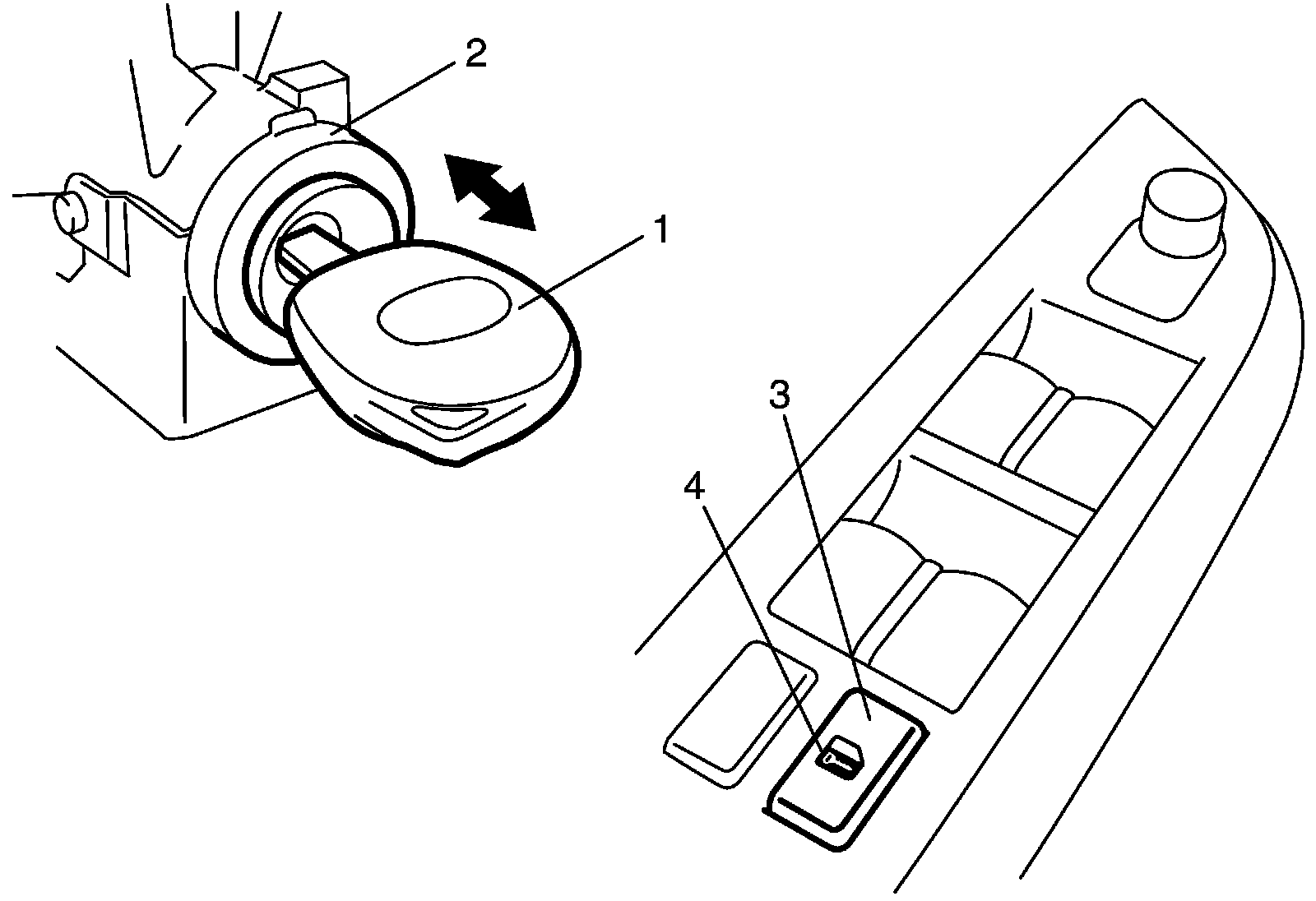 e. Push lock side (3) of driver side manual lock switch (4) 3 times.