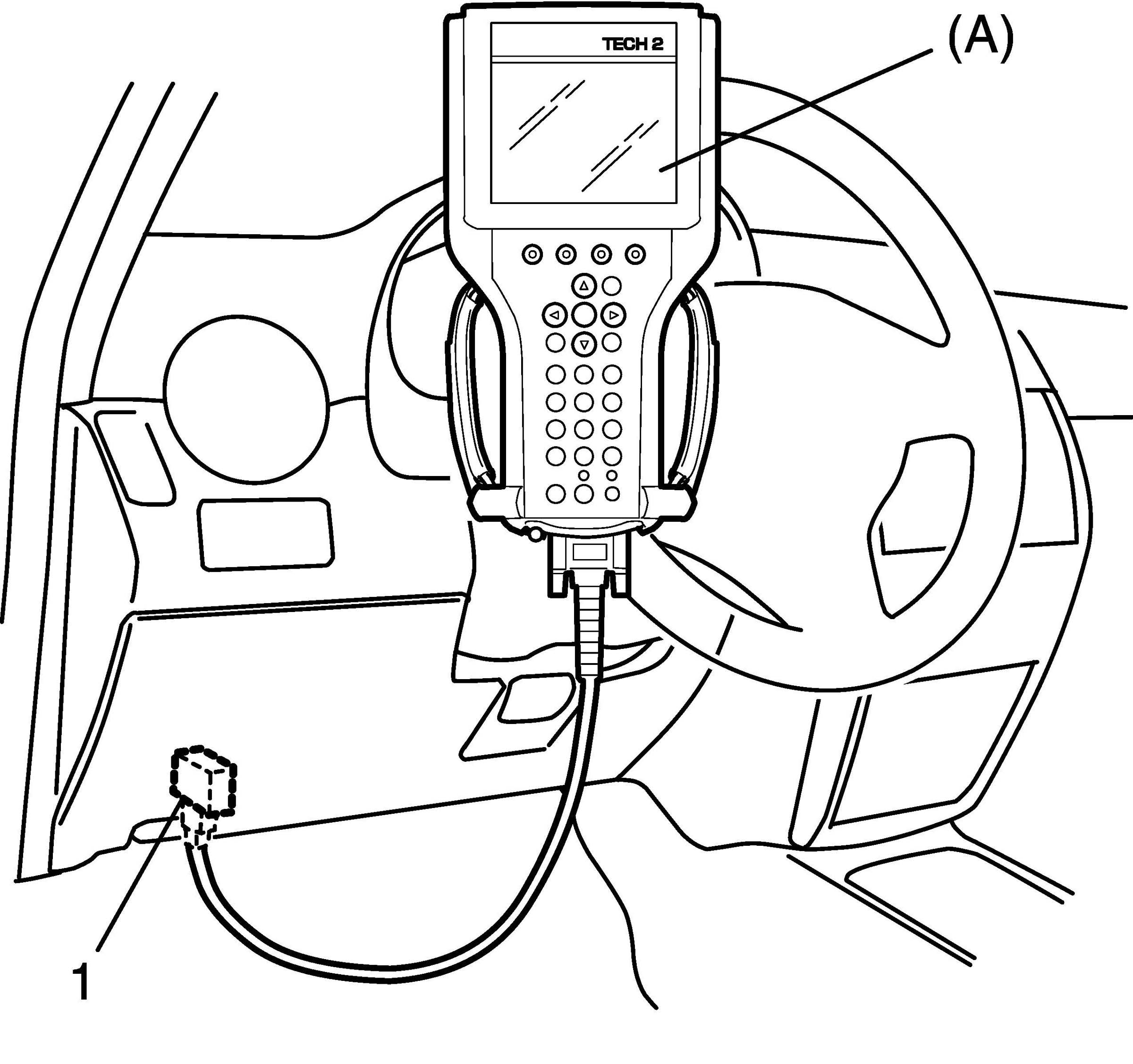 2. Connect SUZUKI scan tool to data link connector (DLC) (1) with ignition switch OFF.