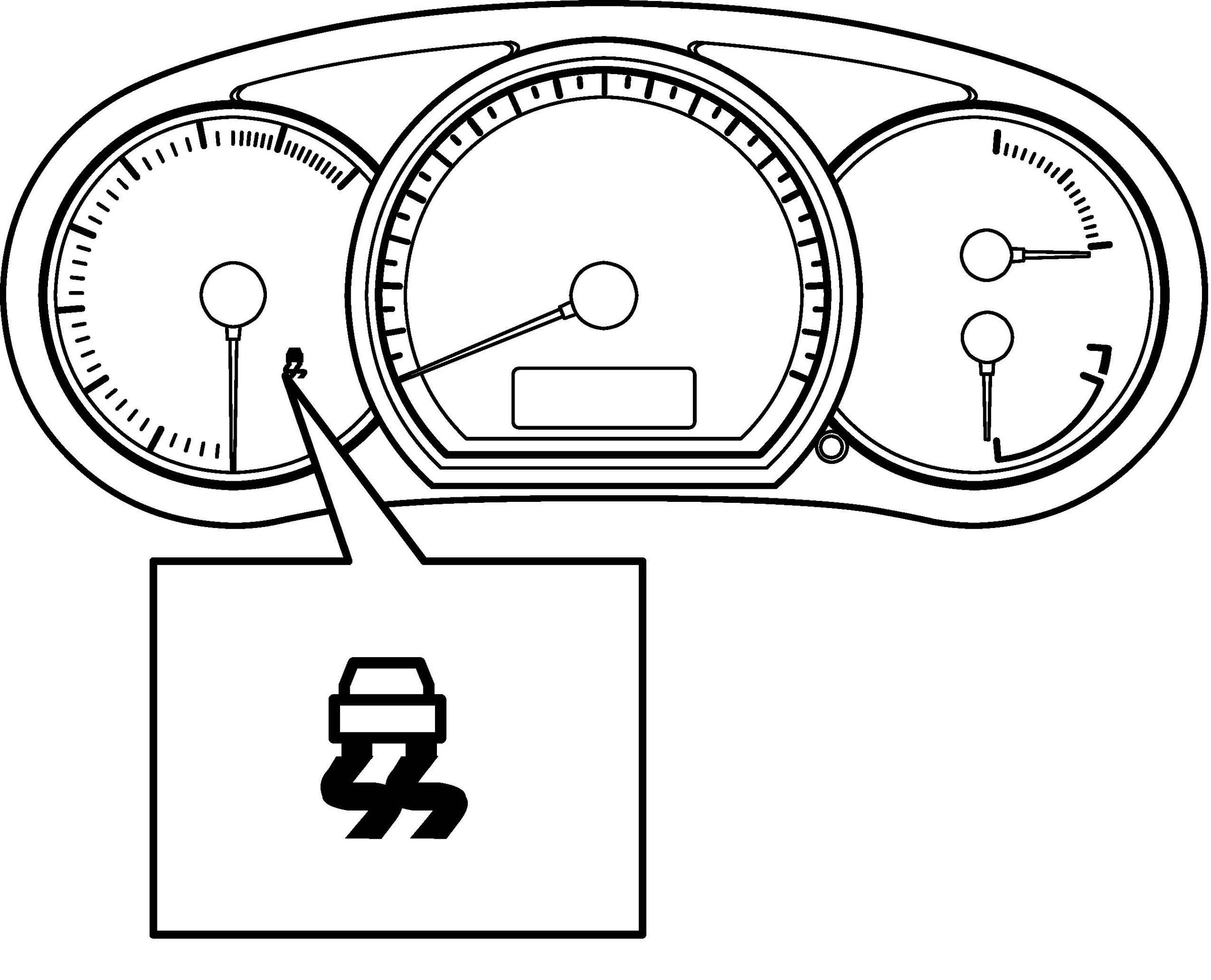 CAUTION: When power is not supplied to the steering angle sensor by removing battery or fuse, DTC C1075 is detected and SLIP indicator light (1) flashes. If DTC other than C1075 is detected, SLIP indicator light flushes and other indicator illuminate. In that case, repair the detected DTC first.