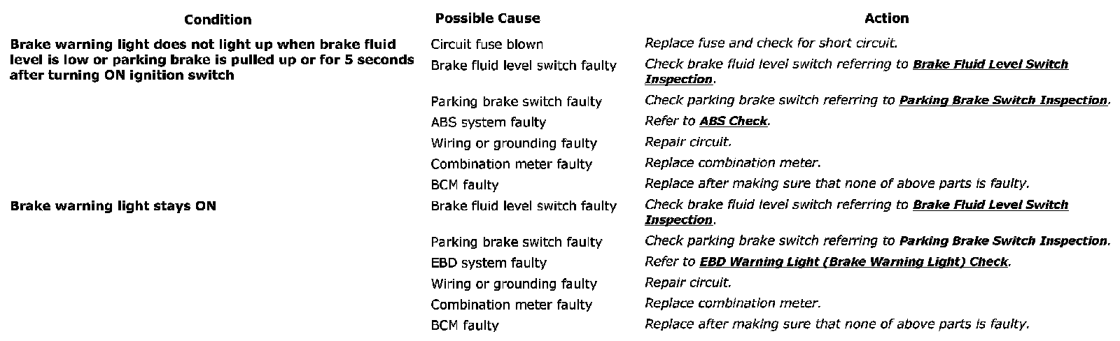 Brake And Parking Brake Warning Light Symptom Diagnosis: