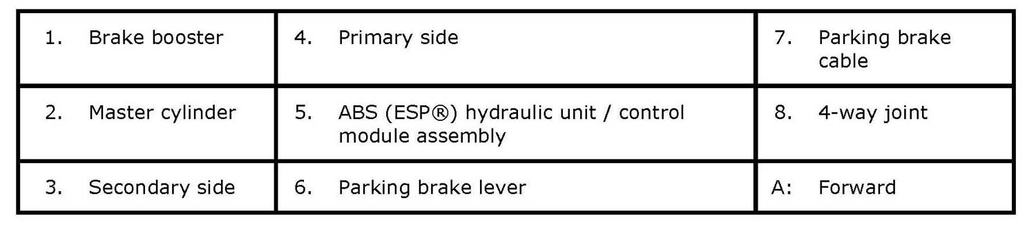 The master cylinder is a tandem master cylinder. Brake pipes are connected to the master cylinder and they make two independent circuits. One connects front right & rear left brakes and the other connects front left & rear right brakes.