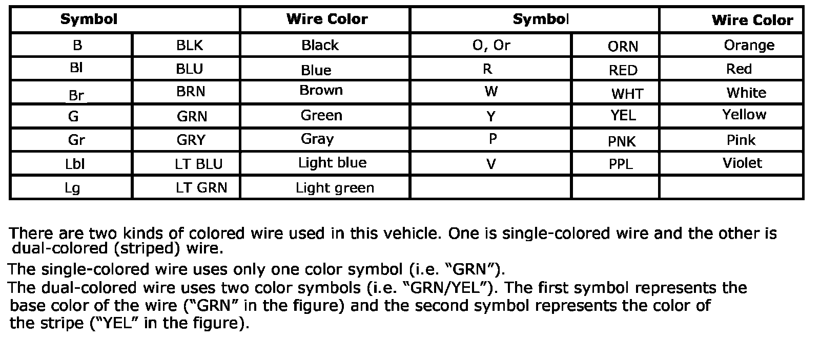 Wire Color Symbols: