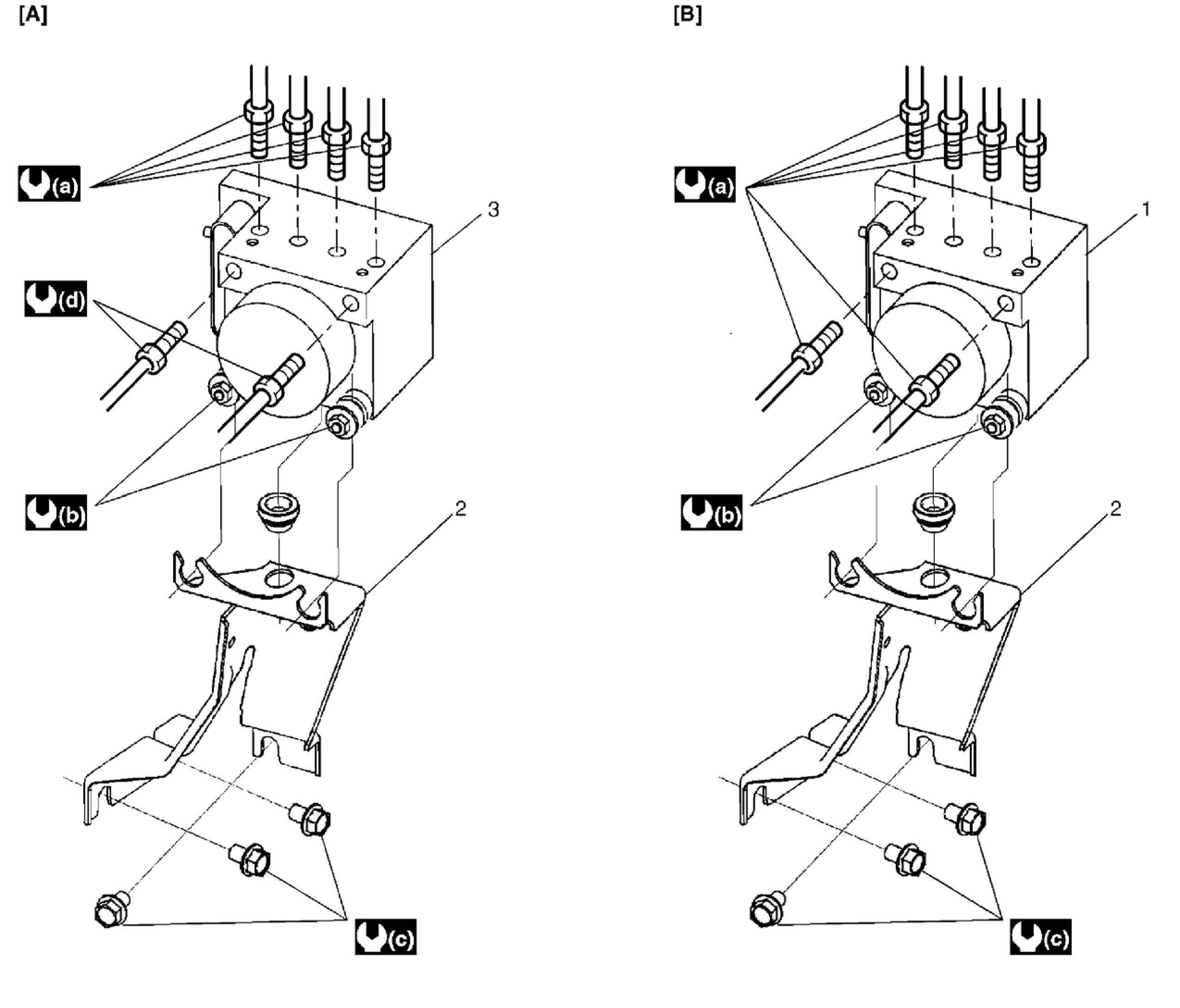 ABS (ESP(R)) Hydraulic Unit / Control Module Assembly ComponentsCAUTION: Never disassemble ABS (ESP(R)) hydraulic unit / control module assembly, loosen blind plug or remove motor. Performing any of these prohibited services will affect original performance of ABS (ESP(R)) hydraulic unit / control module assembly.