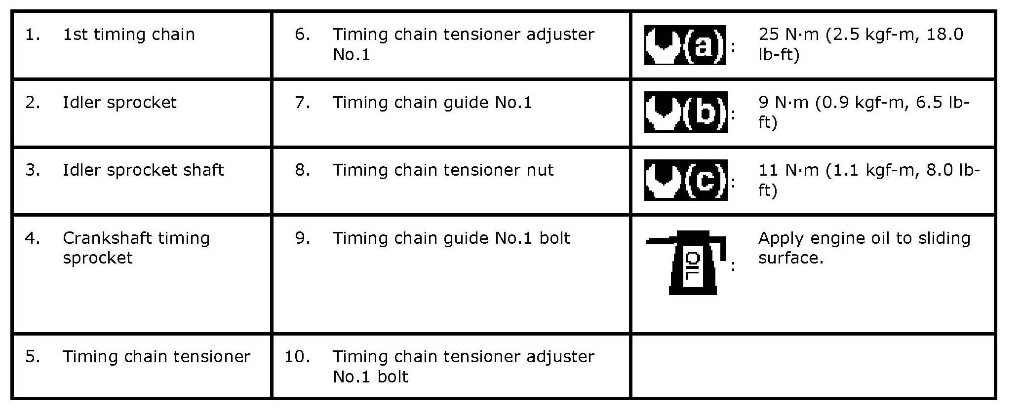 1ST Timing Chain and Chain Tensioner Components