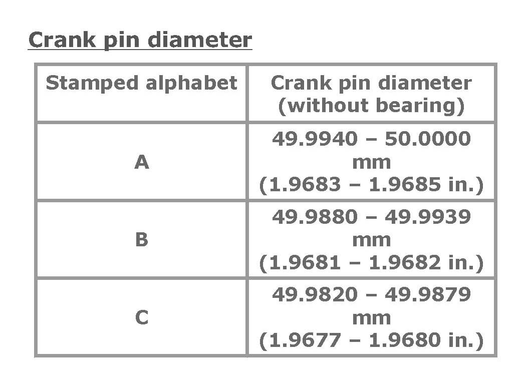 For example, stamped "A" indicates that corresponding crank pin diameter is 49.9940 - 50.0000 mm (1.9683 - 1.9685 in.).
