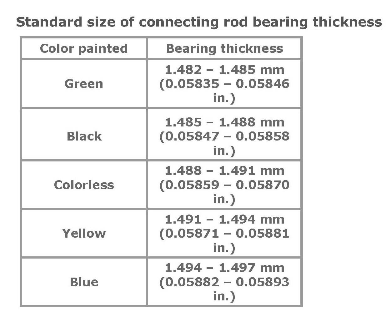 Standard size of connecting rod bearing thickness