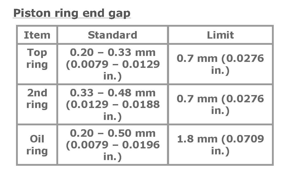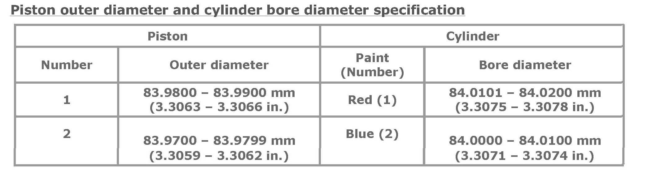 Piston clearance 0.02 - 0.04 mm (0.0008 - 0.0015 in.)