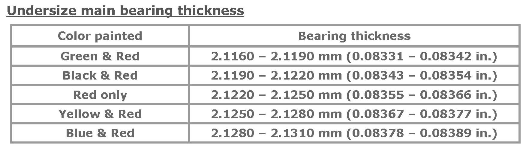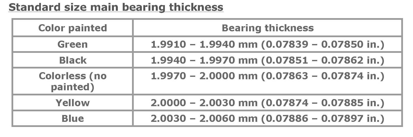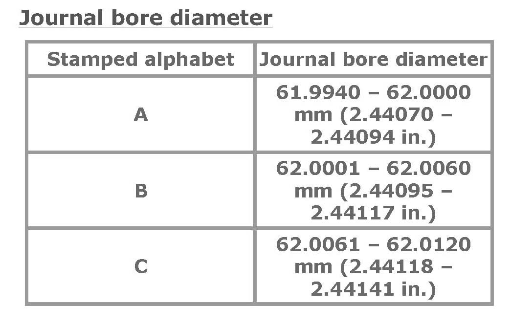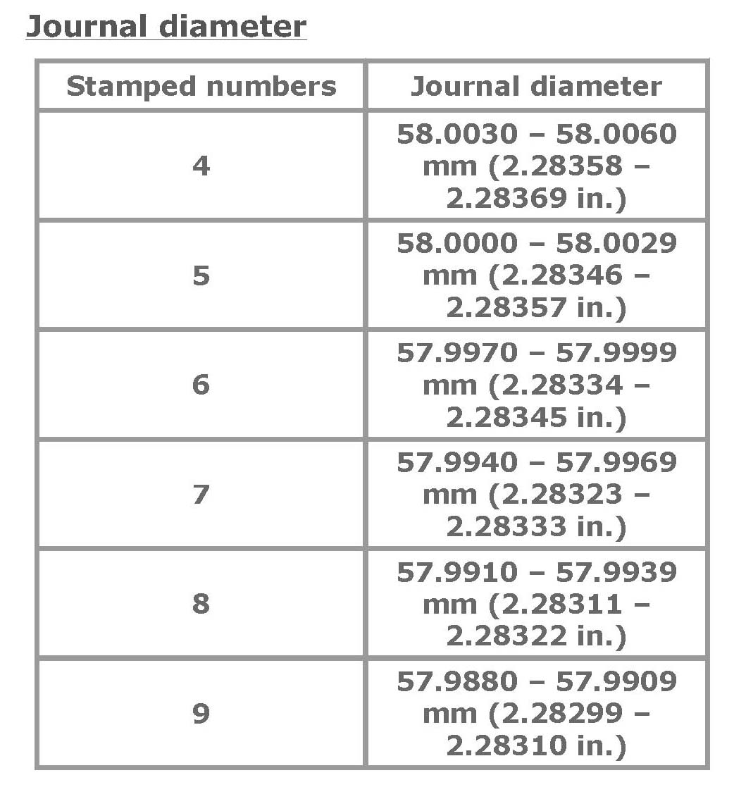 Standard 84.000 - 84.020 mm (3.3070 - 3.3078 in.)