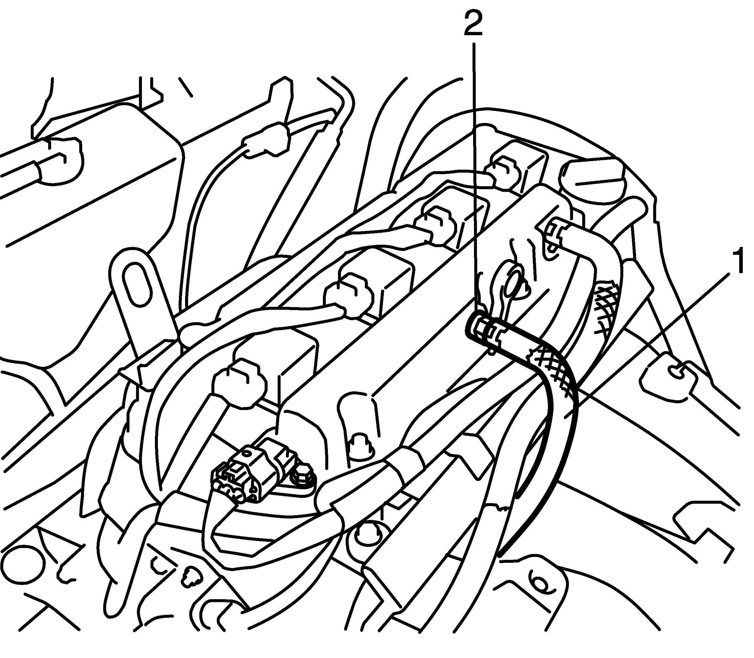 4. Remove hose (1) from PCV valve (2).