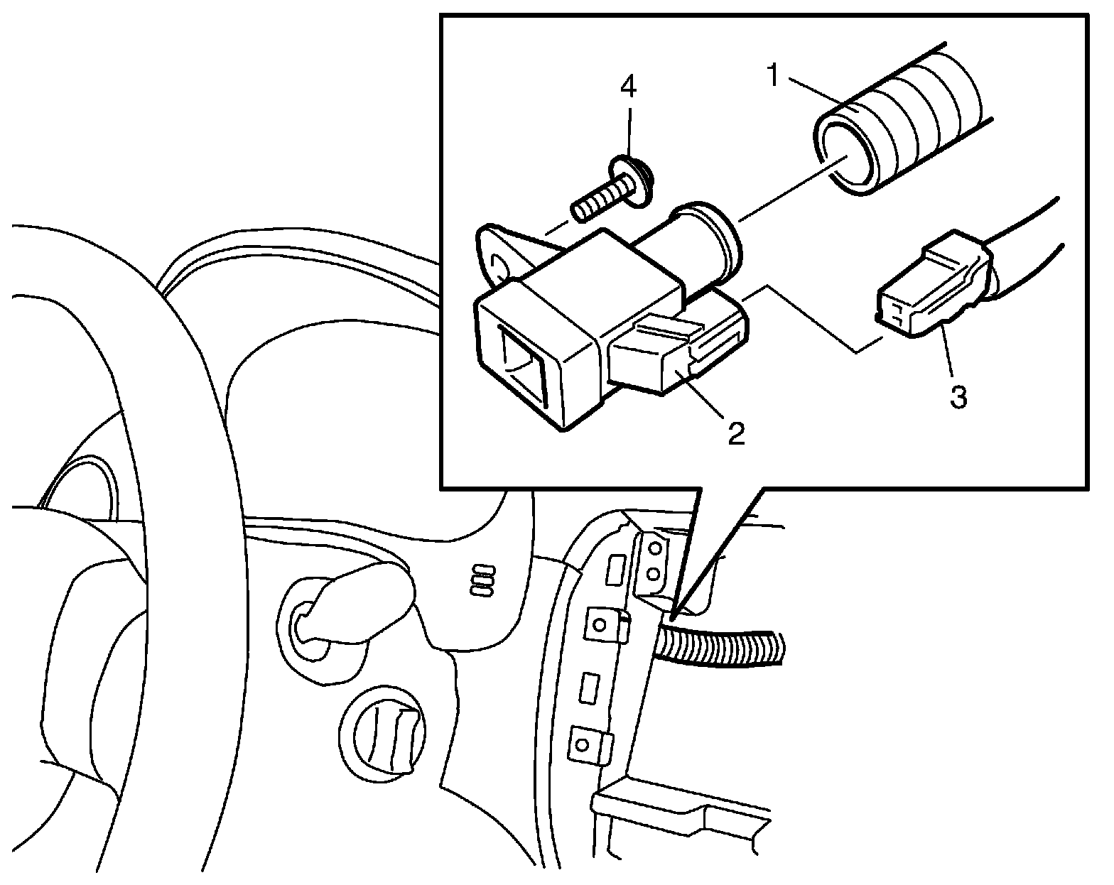 5. Remove inside air temperature sensor (2) from instrument panel by removing screw (4).
