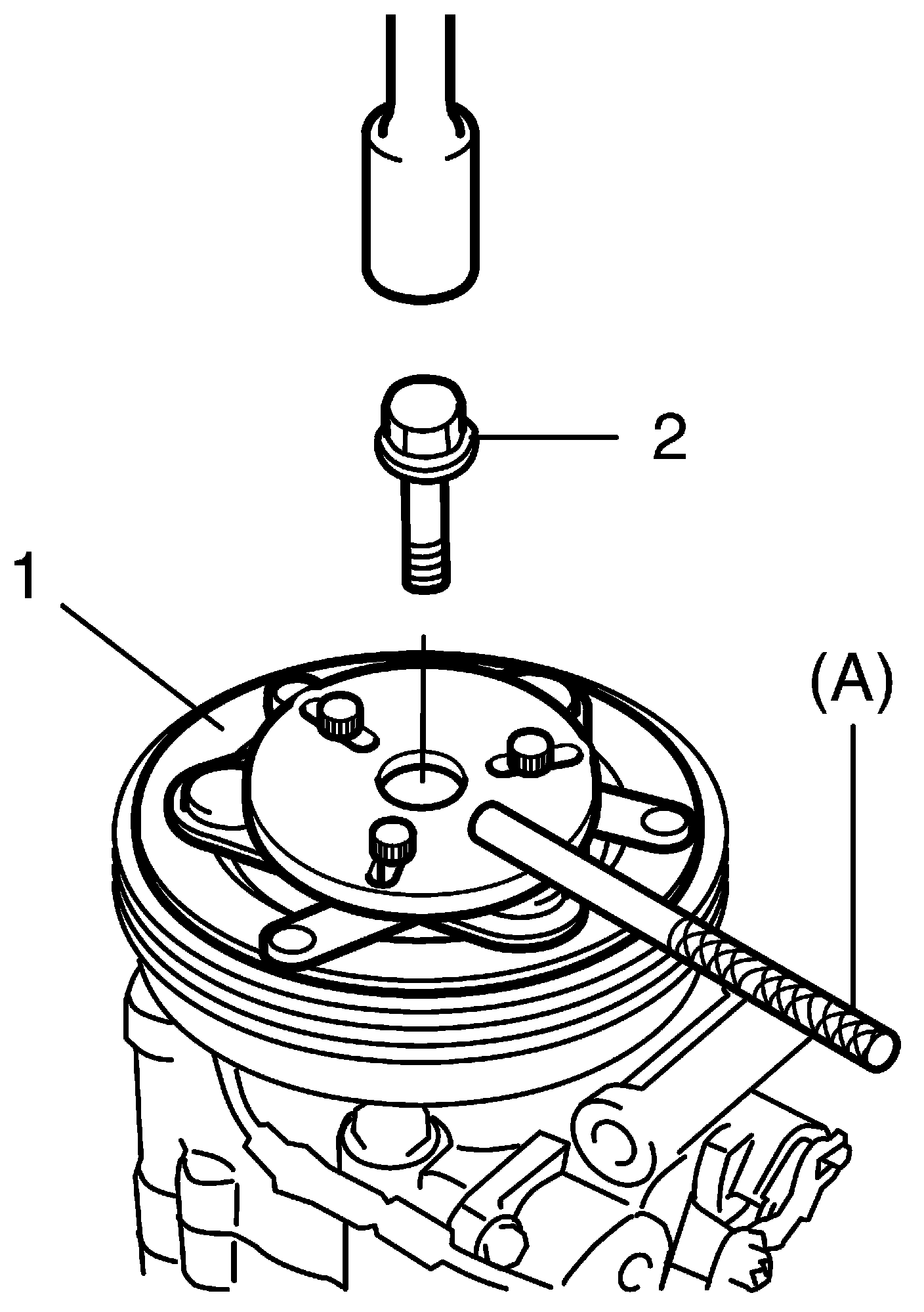 2. Fix armature plate (1) with special tool and remove armature plate bolt (2).