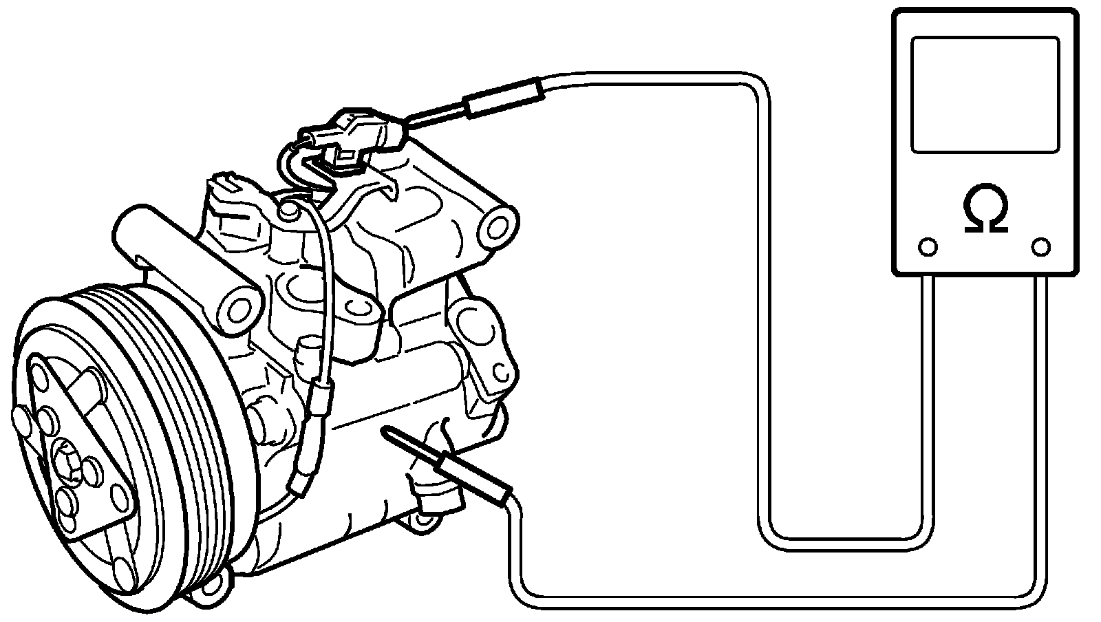 ^ Measure magnet clutch coil for resistance at 20 °C (68 °F). If the measured resistance does out of specification, replace magnet clutch assembly.