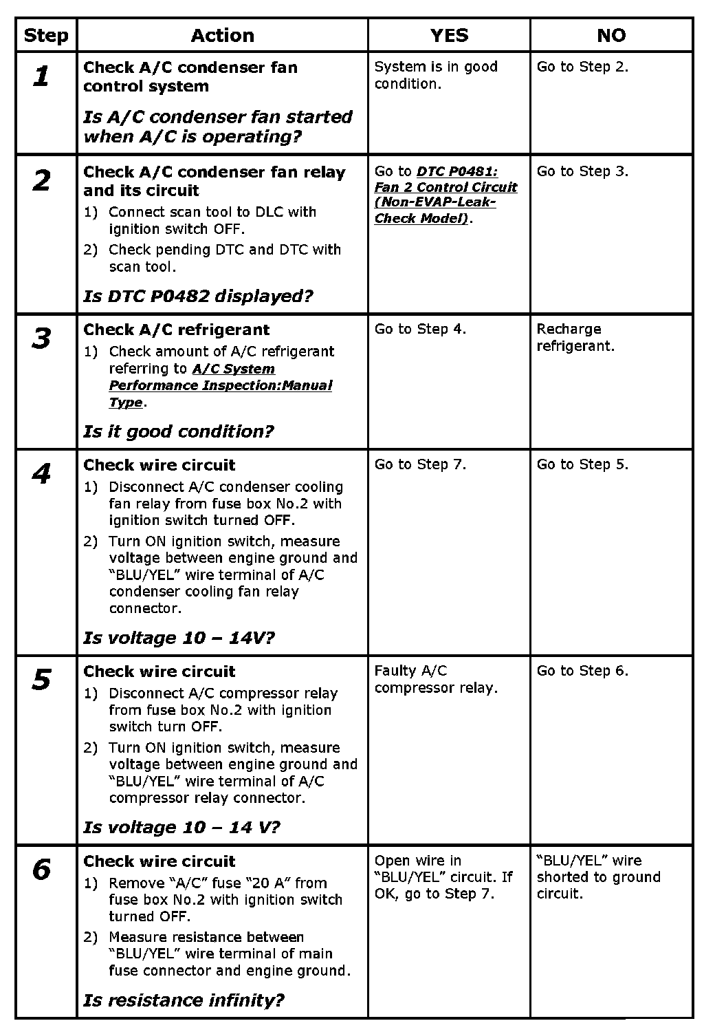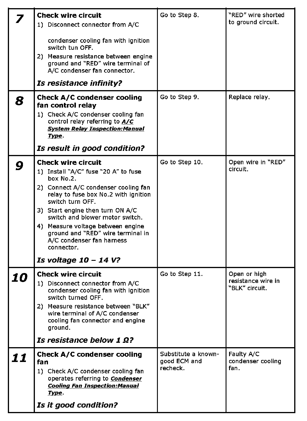 A/C Condenser Cooling Fan Control System Inspection