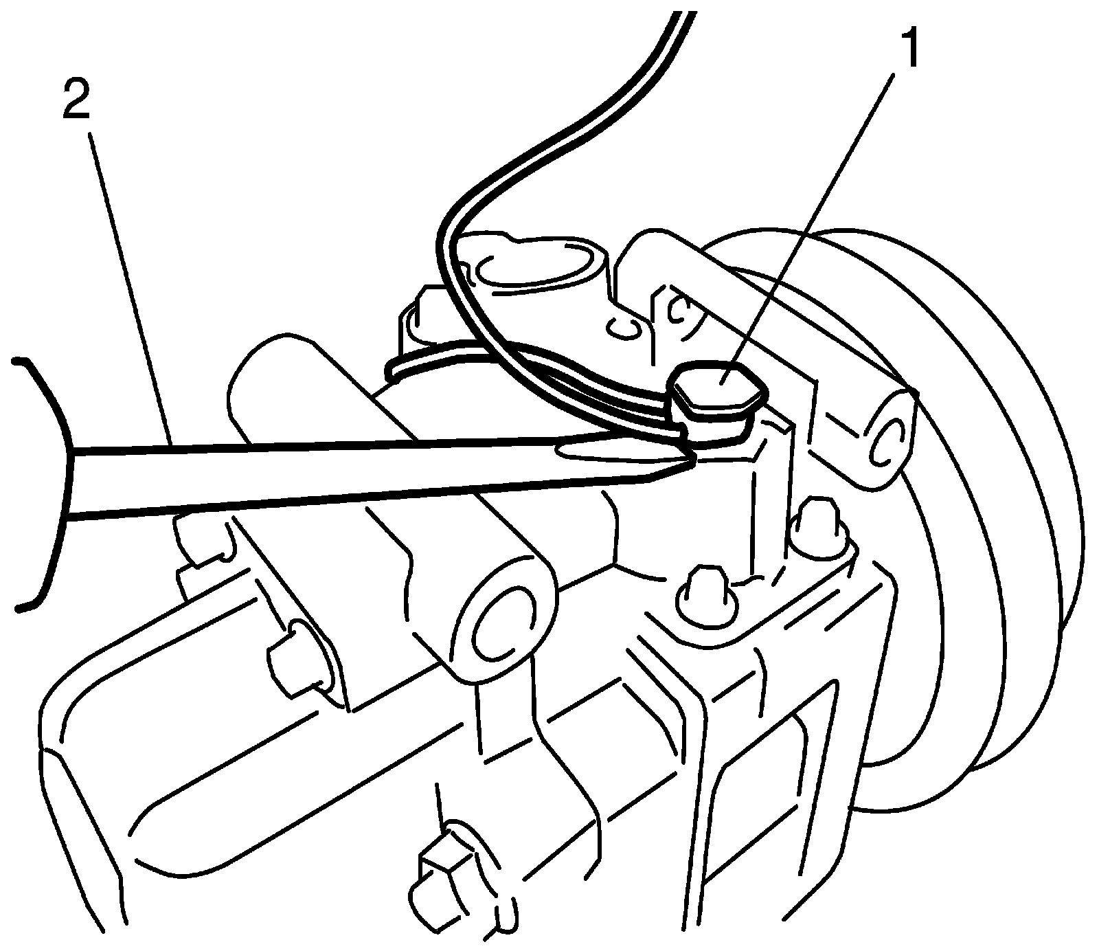4. Remove thermal switch (1) from compressor using flat head (2).
