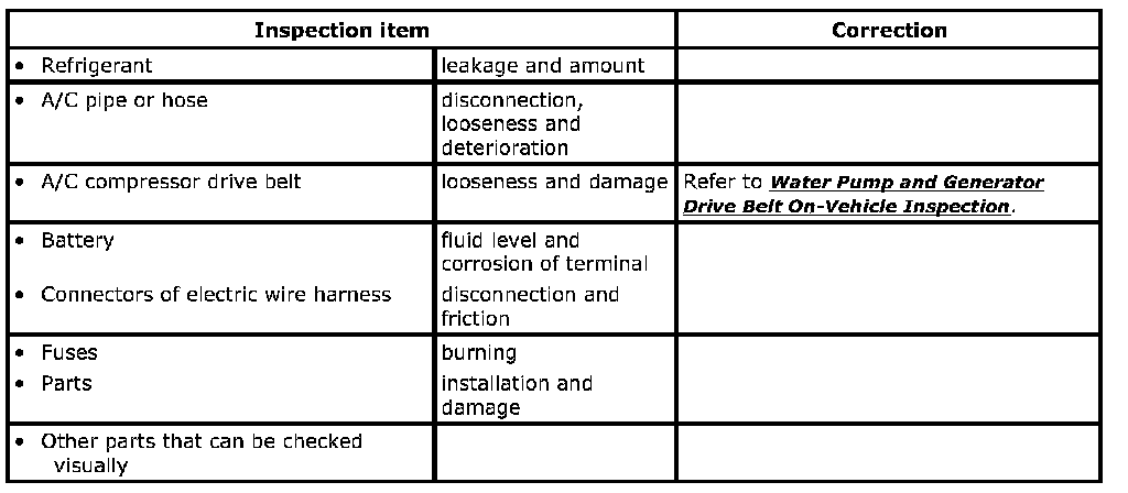 Visual InspectionCheck visually the following parts and systems.