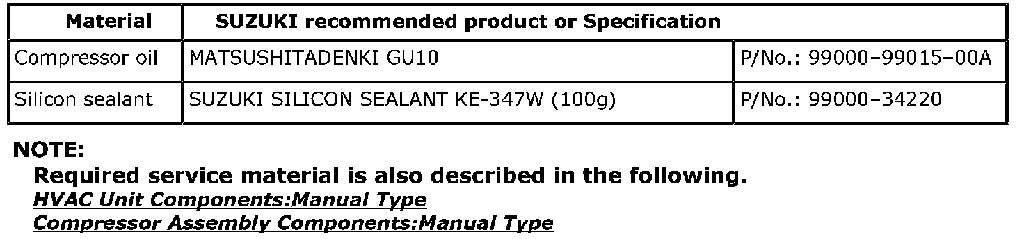 Recommended Service Material: