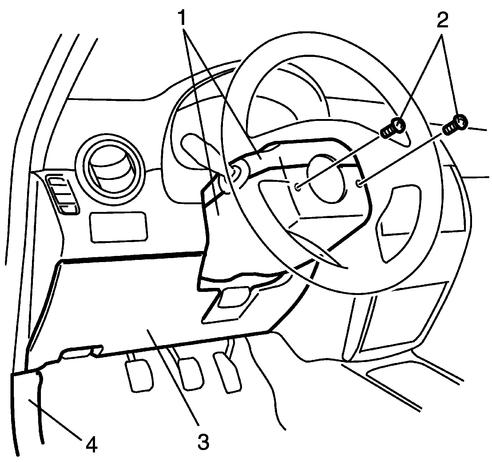 2. Remove dash side trim (4) and steering column hole cover (3).