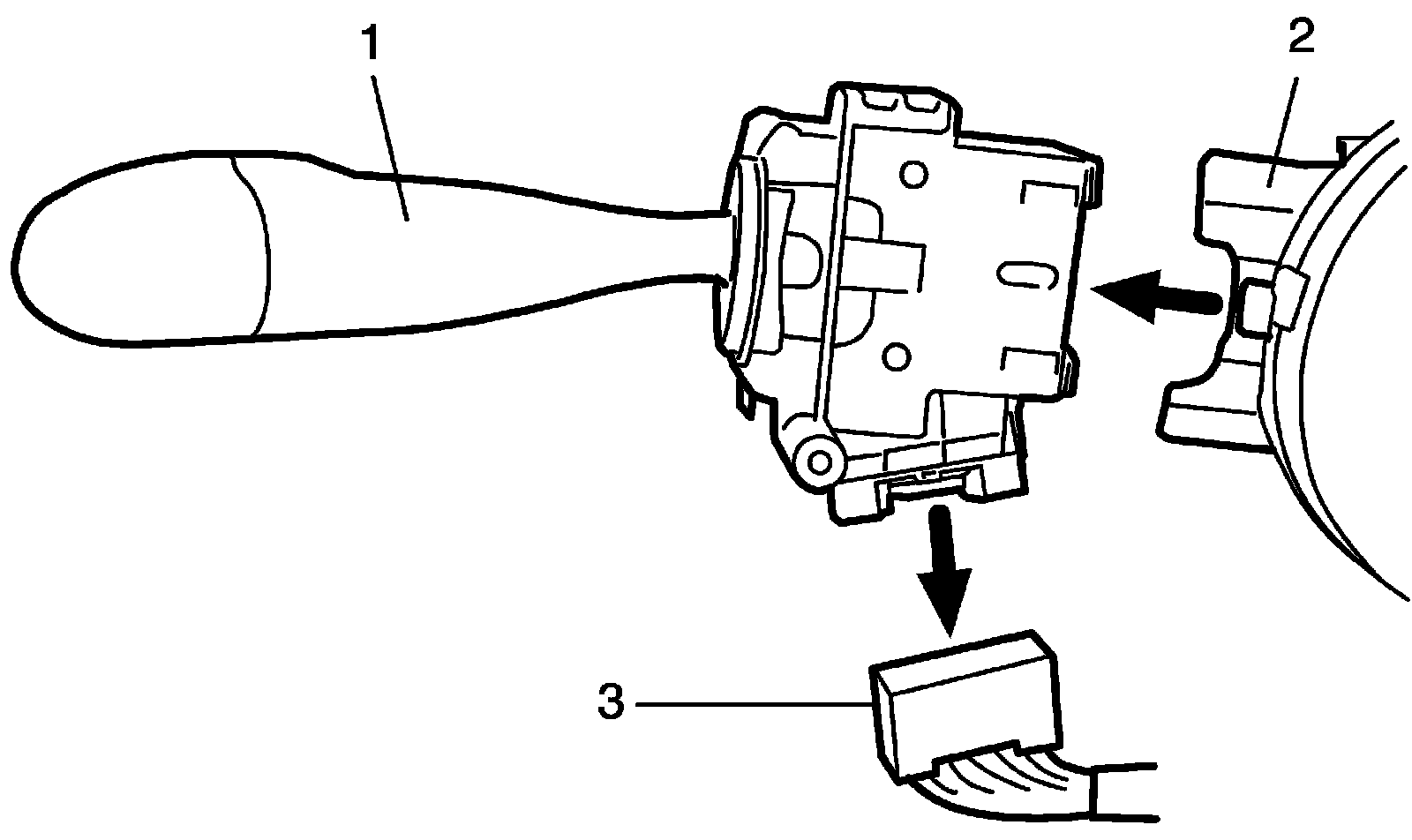 4. Remove lighting switch (1) from combination switch assembly (2) and disconnect its coupler (3).