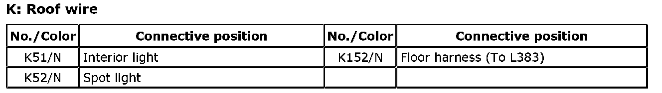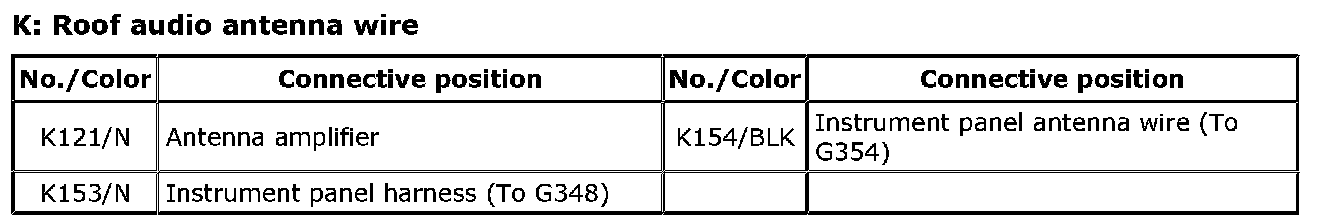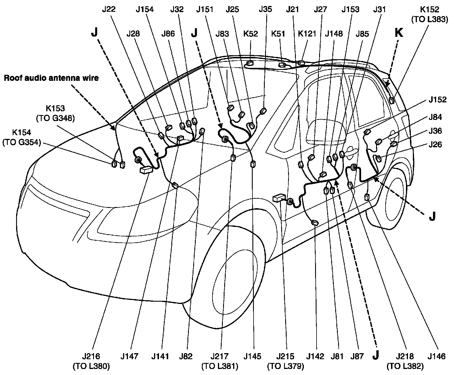 J: Front And Rear Door Wire And Rear Door Wire / K: Roof Wire, Roof Audio Antenna Wire View: