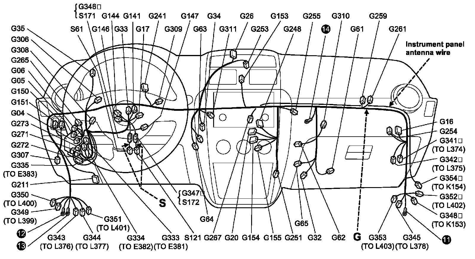G: Instrument Panel Harness, Instrument Panel Antenna Wire / S: Connect Coil View: