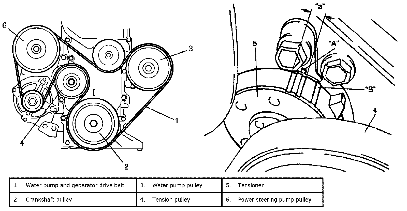 b. If new generator belt has been installed, indicator "A" should be within a of the figure. If it isn't, it means that belt is not installed properly.