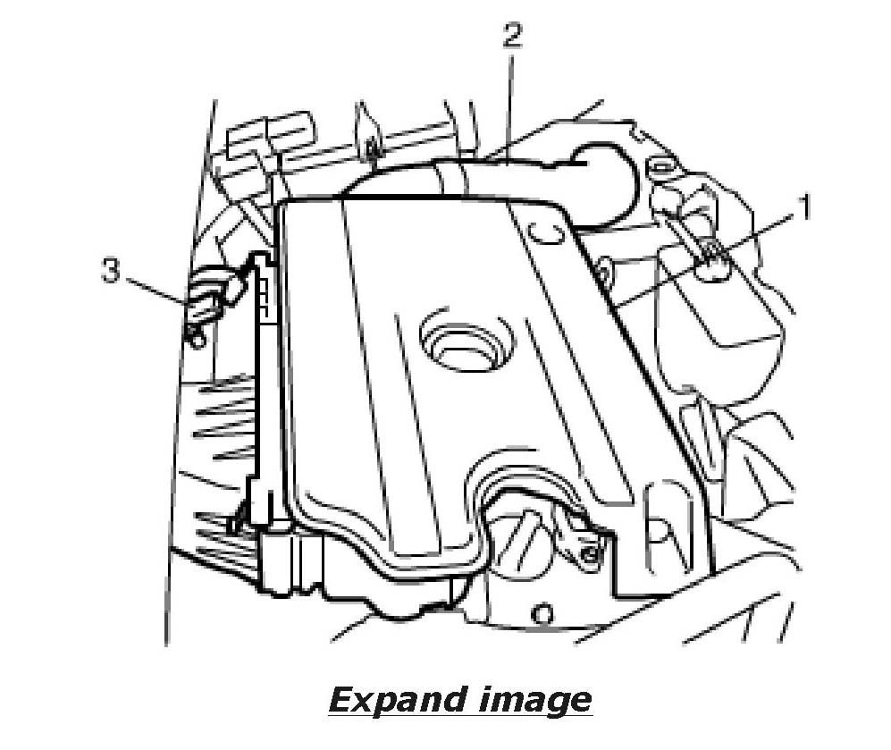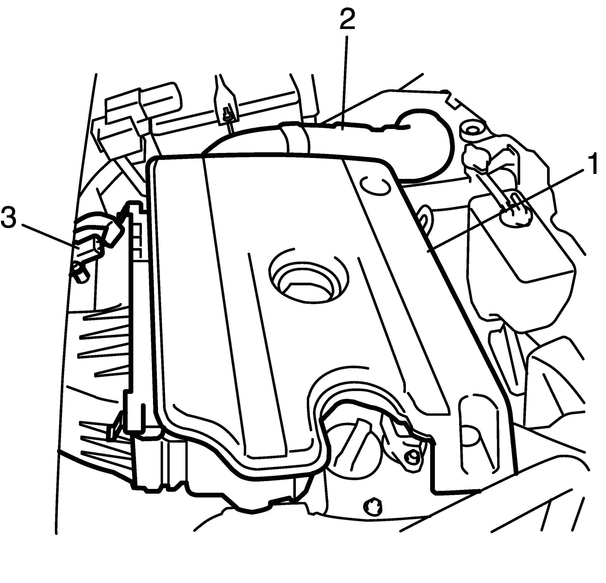 1. Remove air cleaner inlet hose (2) and outlet hose.