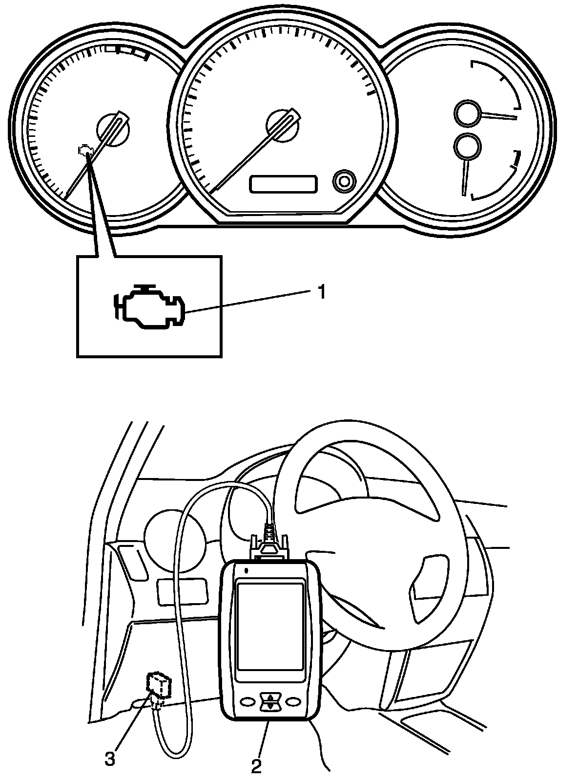 ^ It is possible to communicate via DLC (data link connector) (3) by using not only SUZUKI scan tool (SUZUKI-SDT) (2) but also CAN communication OBD-II generic scan tool which are in compliance with SAE J1978. (Diagnostic information can be accessed by using a scan tool.)