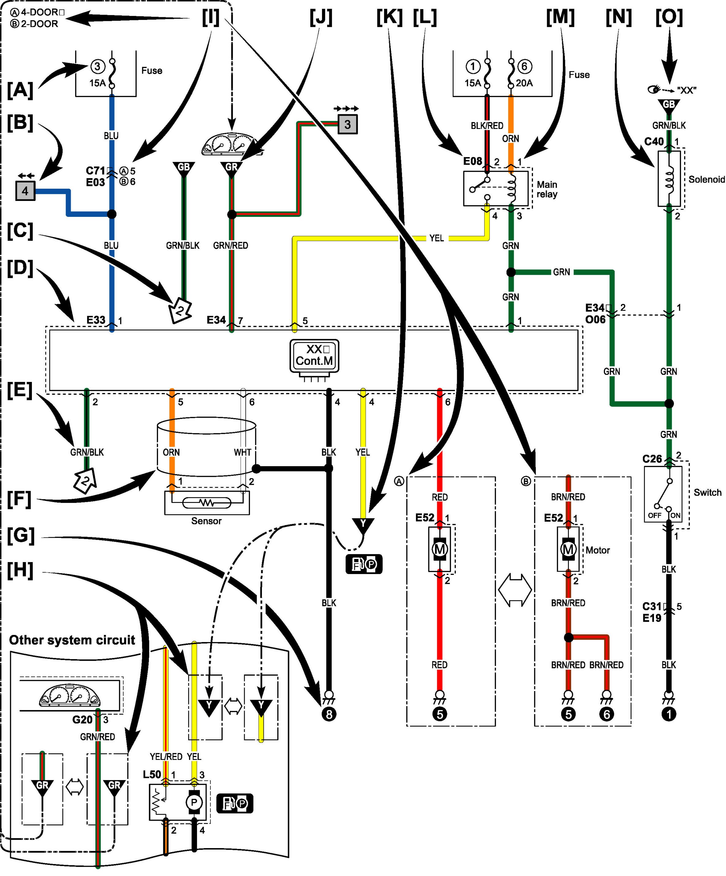 NOTE: The circuit continues to the same symbol with opposite direction within the page. You will find the other symbol in the direction of the arrow.