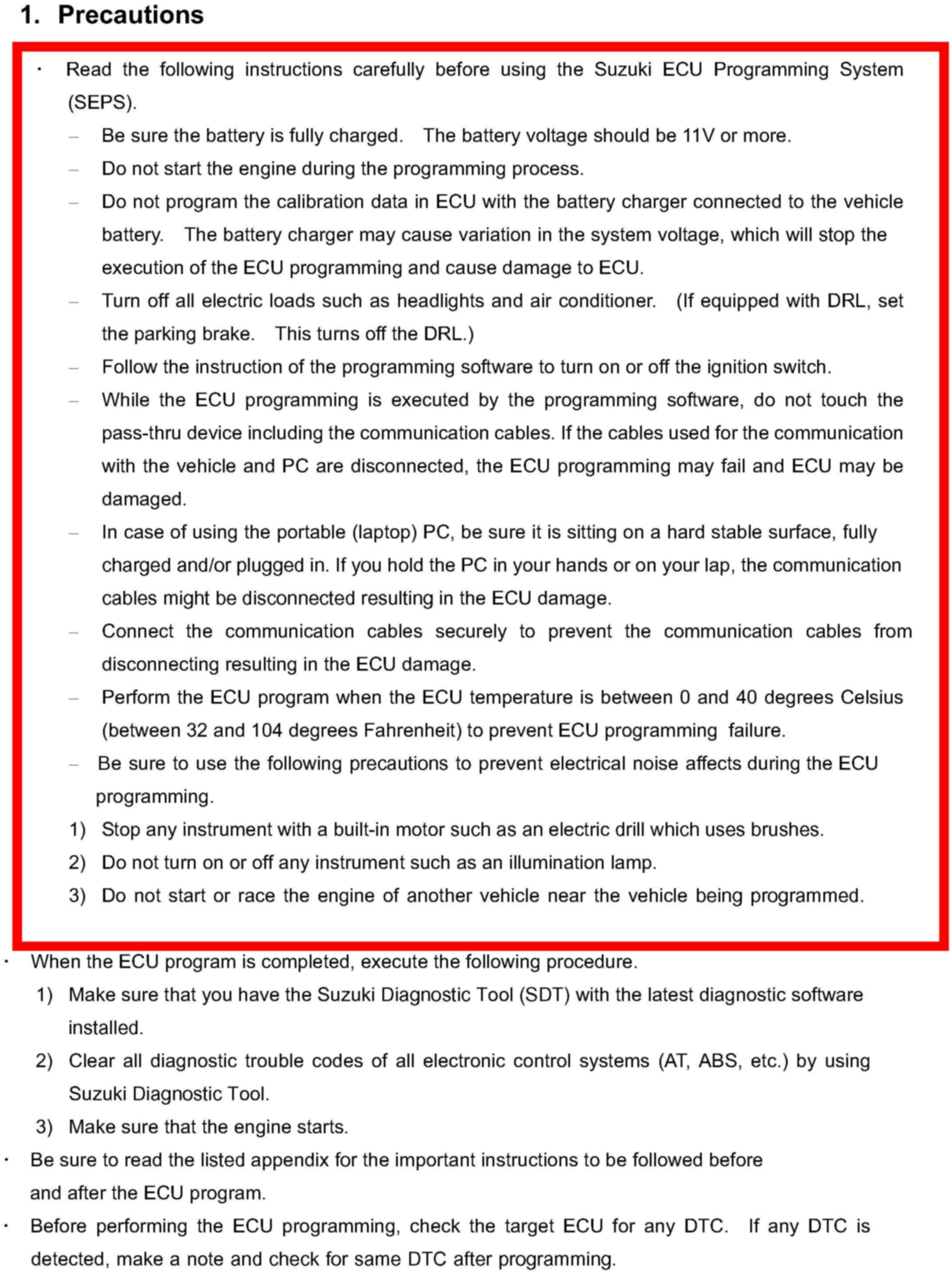 ECM fails to program within a 5 minute time frame and Suzuki ECU Programming System (SEPS) shows an error code.