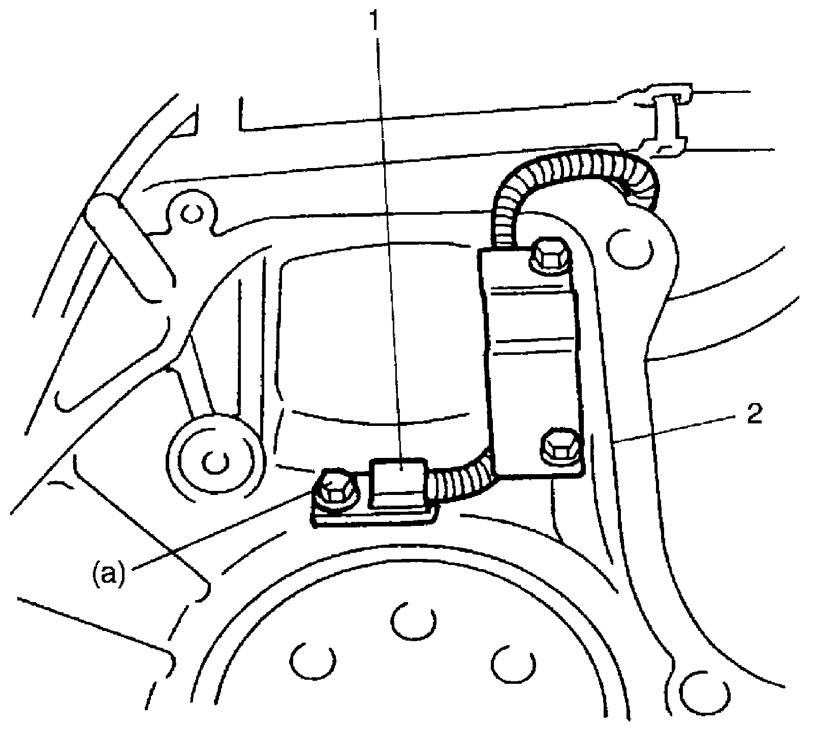 4. Remove CKP sensor (1) from cylinder block (2).