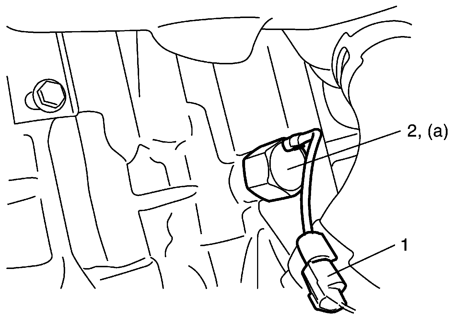 5. Remove knock sensor (2) from cylinder block.