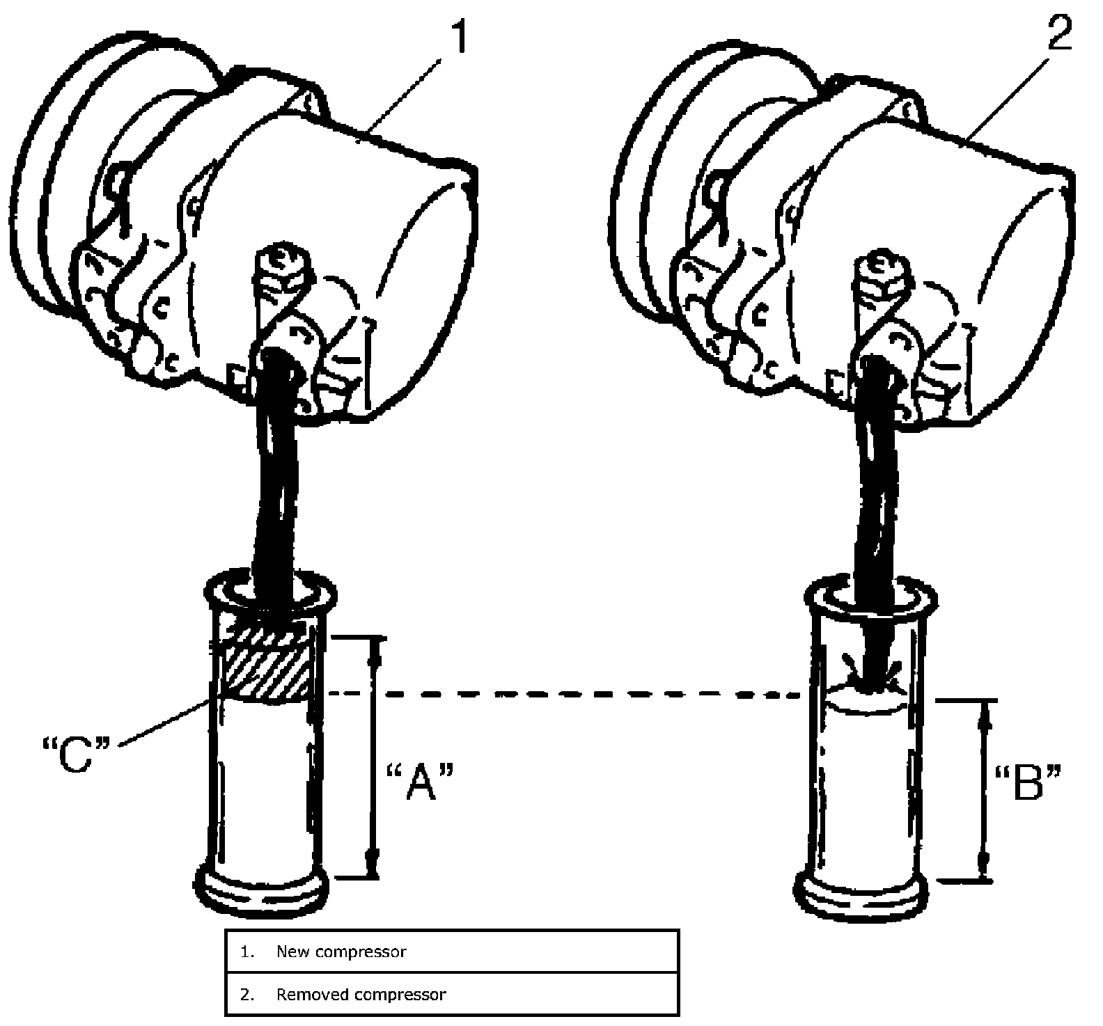 CAUTION: Be sure to use specified compressor oil or an equivalent compressor oil.