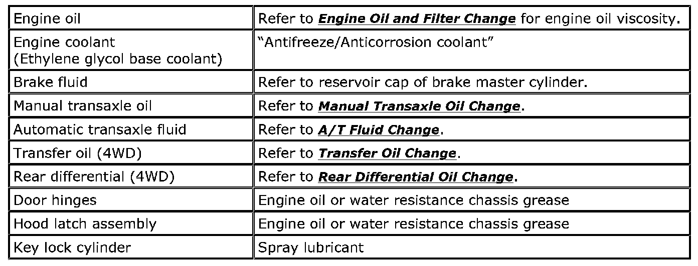 Recommended Fluids And Lubricants: