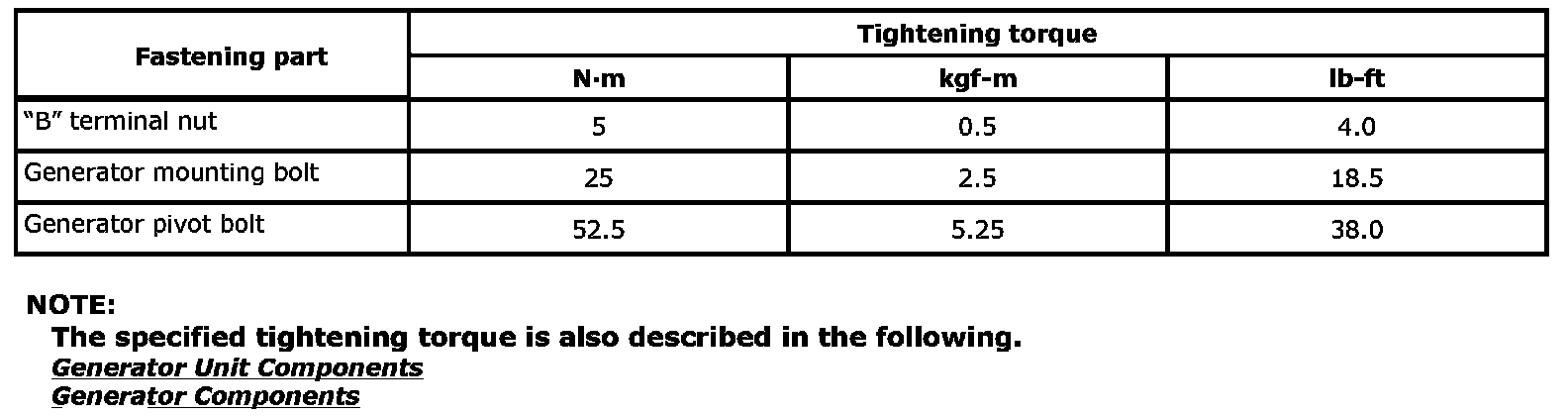 For the tightening torque of fastener not specified in this section, refer to Fasteners Information.