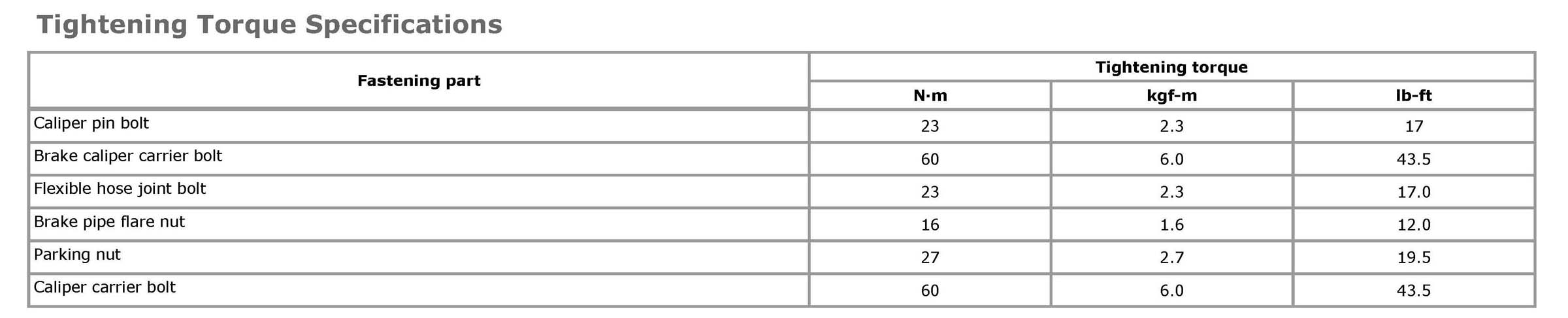 Tightening Torque SpecificationsNOTE: The specified tightening torque is also described in the following. Rear Disc Brake Components: Disc