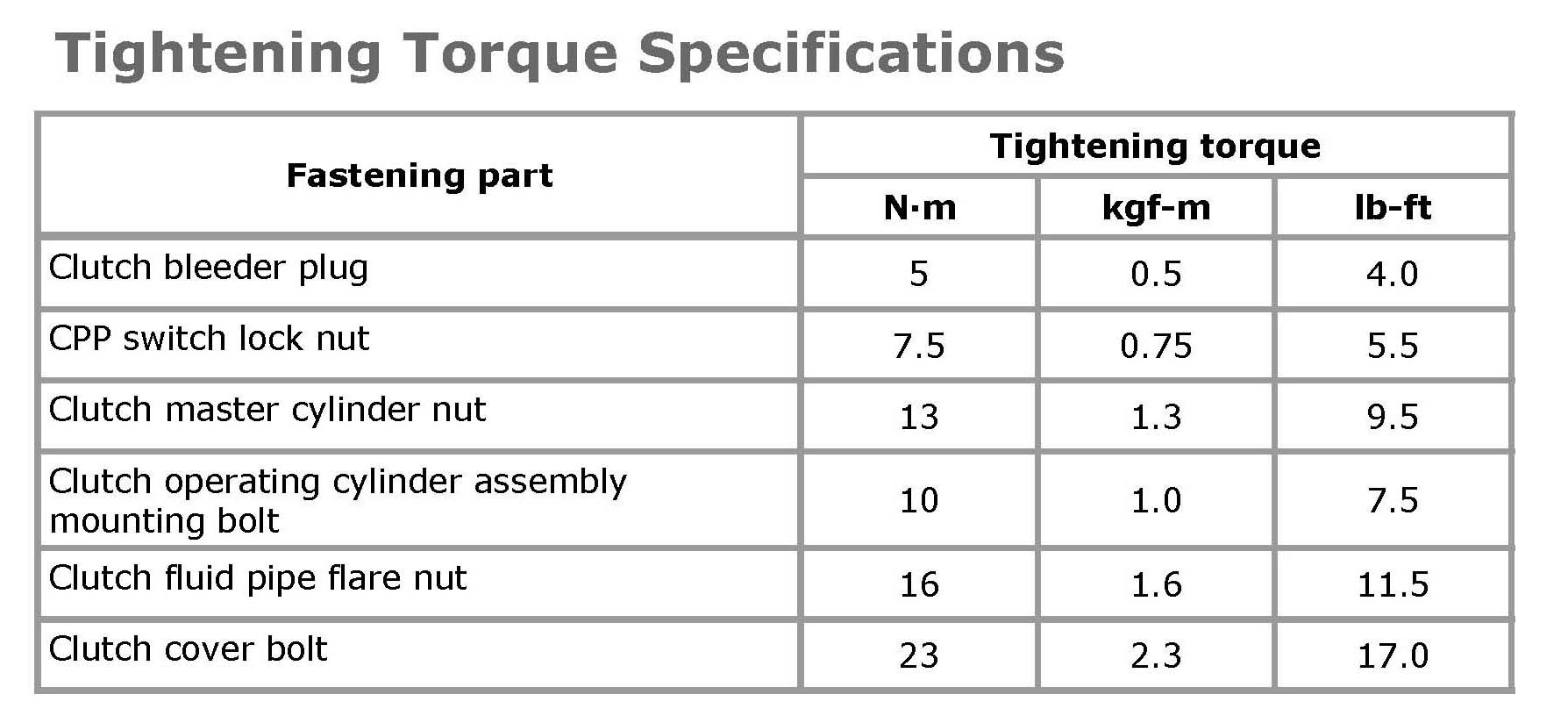 For the tightening torque of fastener not specified in this section, refer to Fasteners Information.